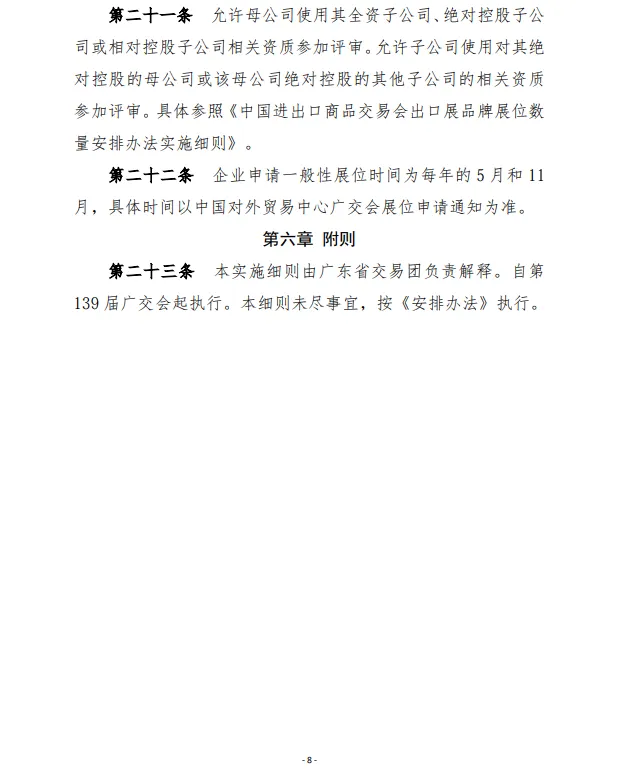 二、其他事项按《广东省交易团广交会出口展一般性展位安排实施细则》执行。