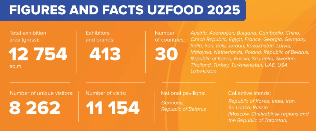 乌兹别克斯坦国际食品、配料及食品技术展(UzFood)是中亚地区食品行业极具权威性的展会,获国际展览联盟认证及当地官方机构强力支持,是全球食品产业链企业开拓中亚市场的关键门户。展会聚焦食品行业全链条,涵盖食品成品、配料及加工技术等核心领域,同时配套行业论坛、商贸对接等活动,不仅为展商提供展示产品与技术的平台,更搭建起供需对接的桥梁,助力企业洞察中亚食品市场趋势,深化行业合作,推动区域食品产业升级。