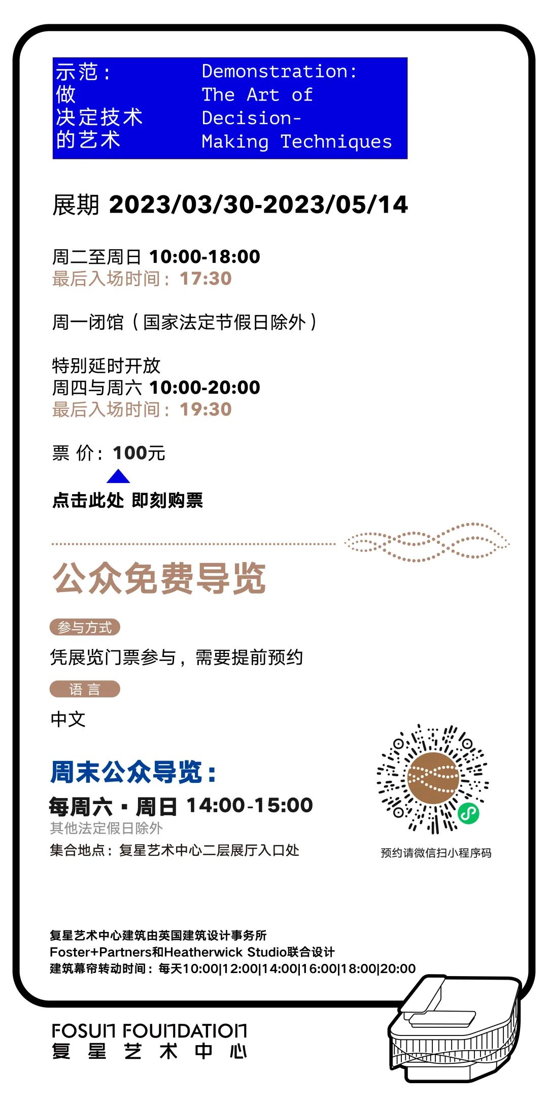 上海复星艺术中心是由复星及复星基金会发起并出资建立的非营利机构,地处 BFC 上海外滩金融中心地块内,建筑由英国建筑设计事务所 Foster +Partners 和 Heatherwick Studio 联合设计。