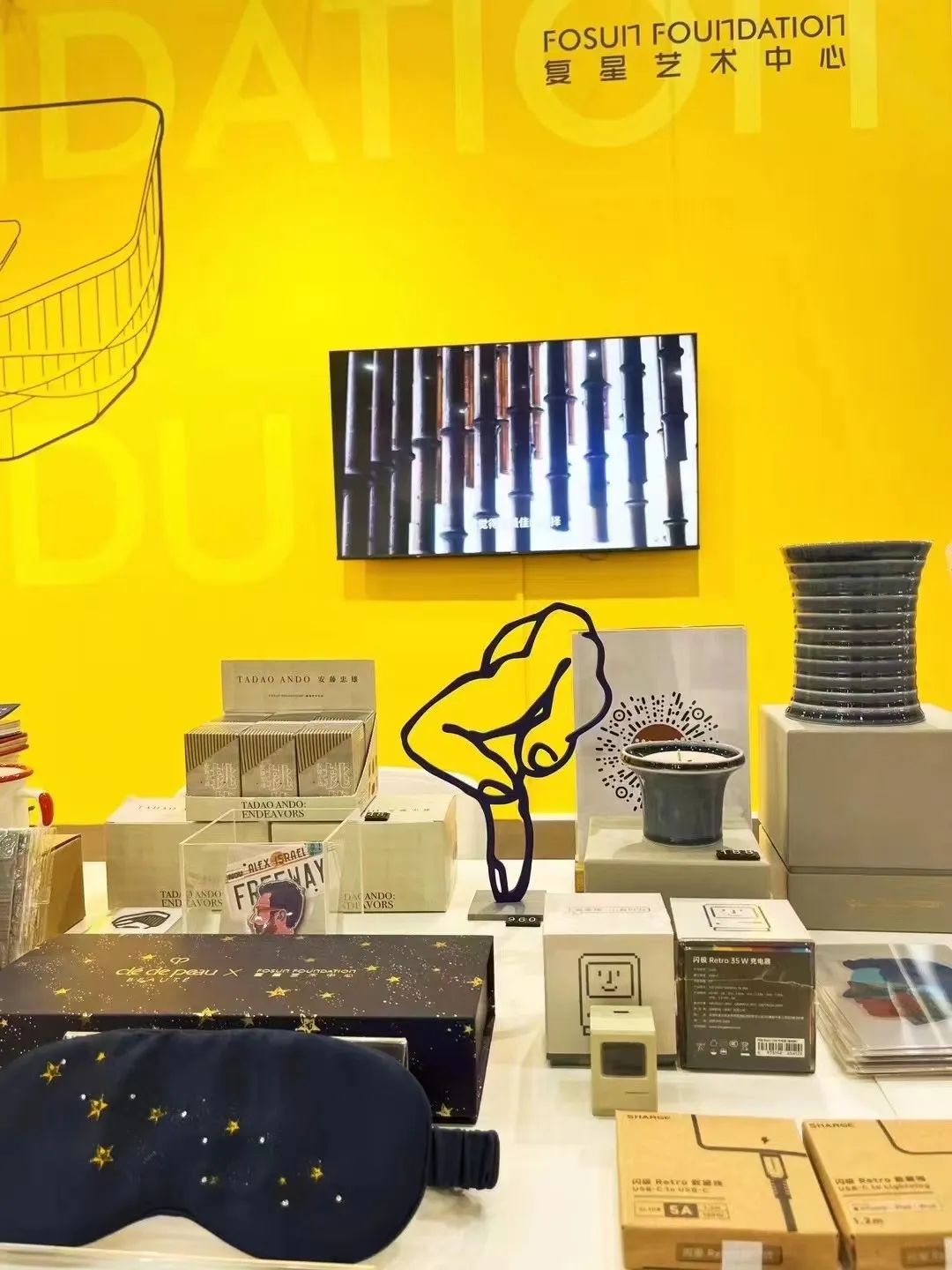 同时还可以购买更多由复星艺术中心出品的展览衍生品,包括安藤忠雄系列周边盲盒、刘建华《塔器》香薰蜡烛、Alex Israel森林拼图、复星艺术中心疾速快充头等等众多精美展览画册与艺术家周边。