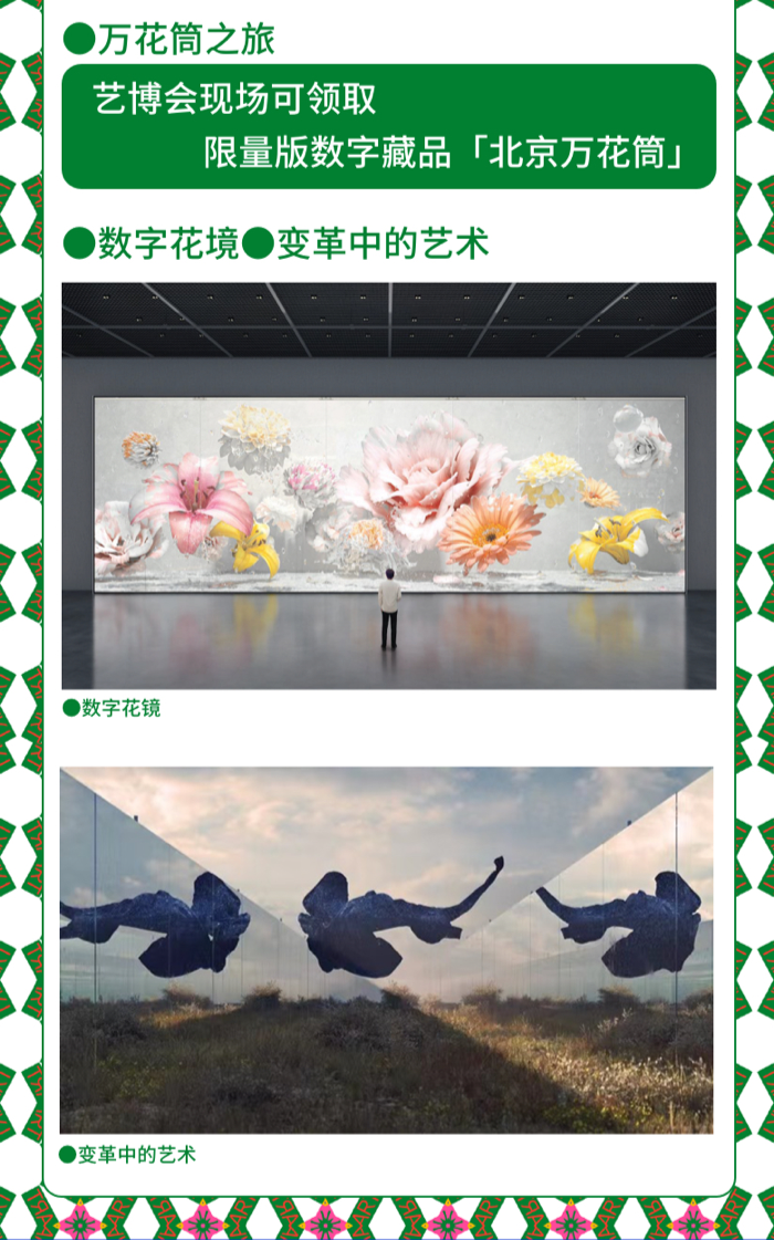 「特别艺术项目」单元将有10家机构在现场呈现跨越不同领域的创新项目。其中d'strict帝视特将带来结合虚拟现实和裸眼3D技术的“数字花境”;尼欧数字艺术将首次揭幕在全球数字艺术家社群间发起的策展项目“变革中的艺术”,其中作品融合了多种数字语言形式如算法生成、AI训练、3D渲染等,将探讨数字艺术及策展在未来更多的可能性。联合国邮政、美丽中国支教项目、非遗童盟、北京当代艺术基金会等具有人文和艺术关怀的公益组织也将展示艺术在交易和产业逻辑之外蕴含的更多力量。第五届设计与艺术博览会的特别展位也将展示出黔东南州银饰刺绣独特的非遗韵味如何在当代语境下再现活力。