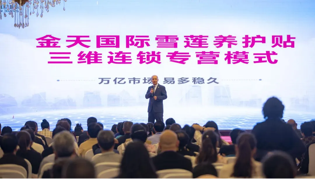 会议伊始,金天国际德商院林佳老师以“走进金天”为题,从金天国际企业发展历程、产业布局、雪莲养护贴行业标准、五个第一、蓝海市场等向与会嘉宾介绍金天国际企业,林佳老师上演了一场慷慨激昂的演讲。他首先对到场的各位市场伙伴表达了热烈的欢迎和深深的感谢,感谢大家长久以来对金天国际的坚定支持与深厚信任。他表示,金天国际一直以来都秉持着为合作伙伴提供全方位支持与服务的宗旨,此次招商会的成功召开,更是体现了公司与合作伙伴的深厚情谊与对未来的坚定信心。