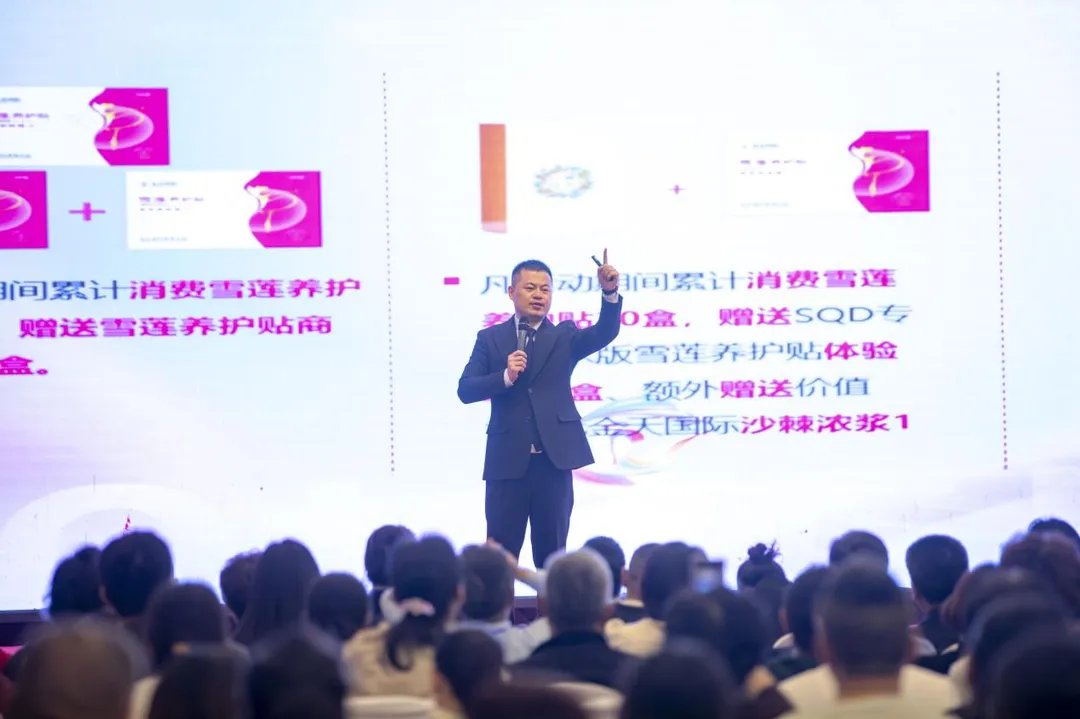 值得一提的是,会议上来自金天国际第一营销集团与第二营销集团的四位优秀市场合作伙伴上台对雪莲养护贴事业与产品做了精彩分享,她们的分享引起了现场嘉宾的强烈共鸣,不时博得阵阵掌声,令在场所有来宾感到受益匪浅。