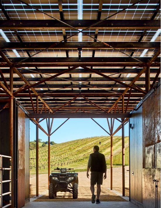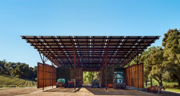 光伏系统的安装为酿酒厂提供了一处农用车辆停放处、工具小仓库以及牲畜用品的储存提供有遮盖的露天储存空间。
