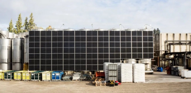 整个项目包括一套屋顶光伏系统,其中采用了660个太阳能组件和一个包括65块太阳能电池板的垂直阵列。该项目的负责人表示:“该垂直墙体不仅可以发电,还能减少酒桶的能量消耗,因为它可以保护酒桶不受太阳直射。它发挥了三重作用,即发电、阻挡光照和减少能源消耗,因为让酒桶内保持低温还需要电力。”