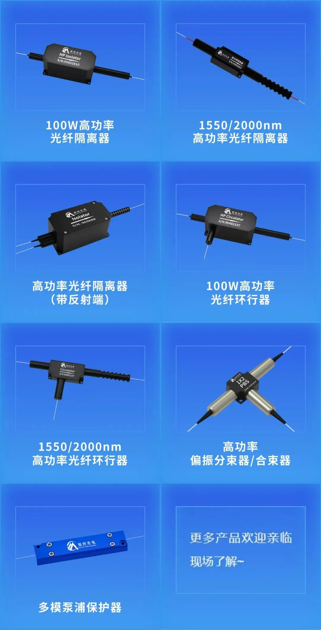 作为保偏光无源器件领域的深耕企业,铭创光电此次将在现场重点展示紧凑型光纤器件高功率光纤器件、短波长光纤器件、拉锥光纤器件、保偏光纤器件等核心产品及解决方案