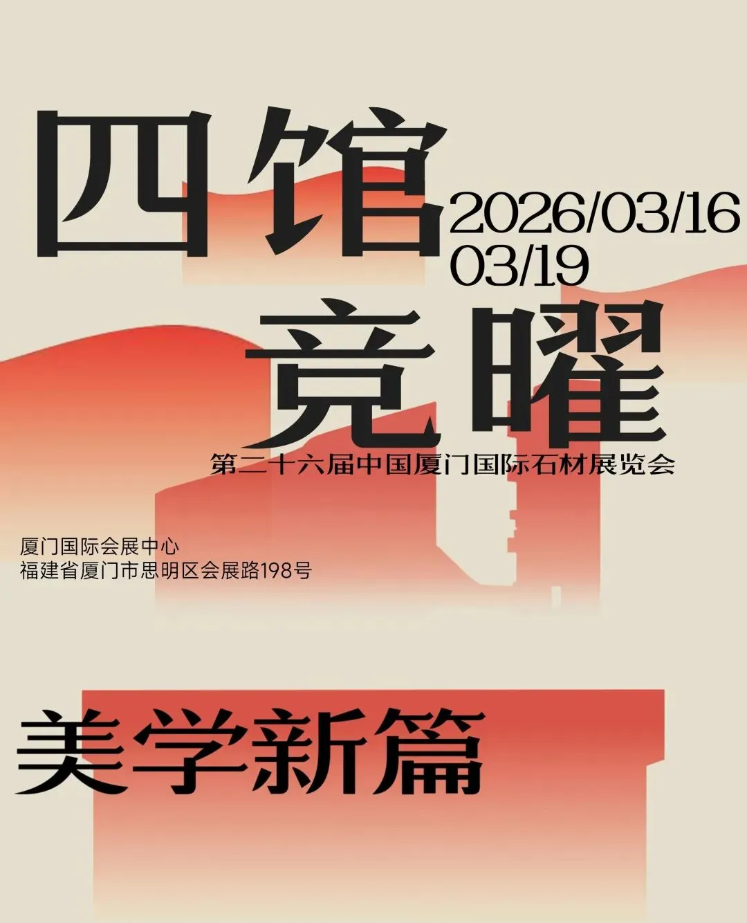 3月16-19日,第二十六届中国厦门国际石材展览会将于厦门国际会展中心举行。展会深度聚焦“资源、科技、设计”三大核心看点,覆盖24个展厅,设置八大主题展区,全面展现全球石材产业从源头到终端的产业链活力。