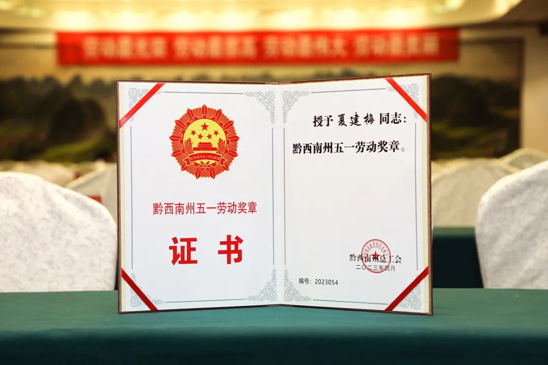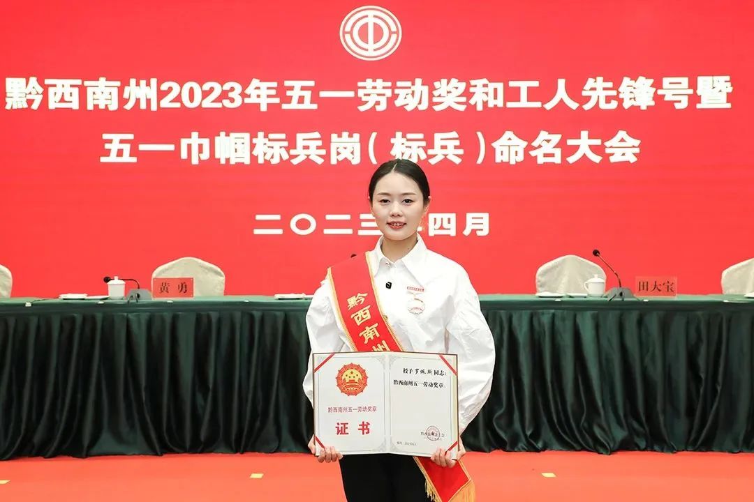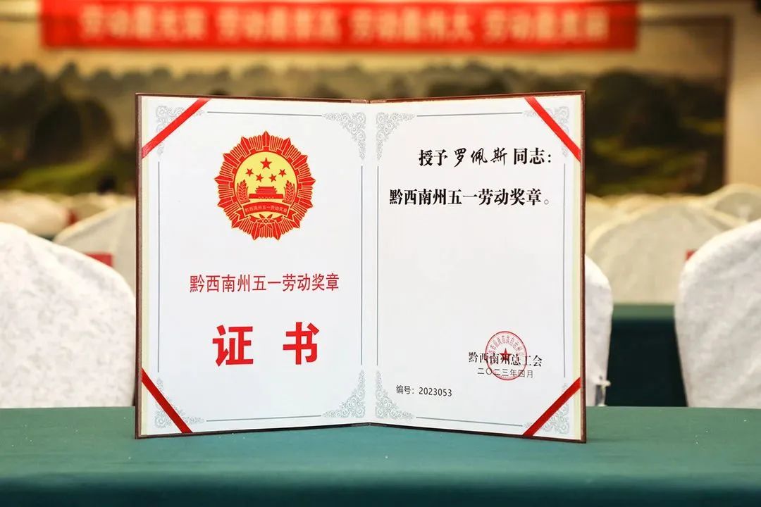 2023年4月25日,黔西南州总工会举办的“五一劳动奖和工人先锋号暨巾帼标兵岗(标兵)命名大会”,富康国际酒店罗佩斯、夏建梅光荣获奖,并被授予“黔西南州引领性竞赛类五一劳动奖章”。
