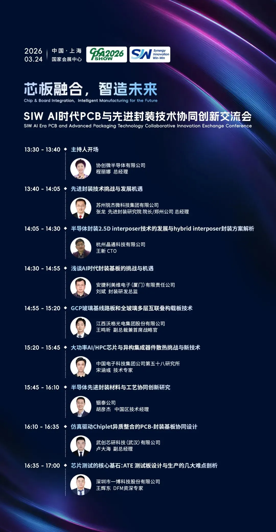 汇聚先进封装、载板基板、材料工艺、芯片测试等领域的八位顶尖专家,均来自行业头部企业与科研院所,从产业底层逻辑到技术落地闭环带来专业解读: