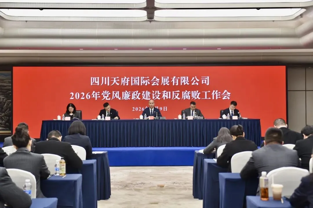 3月9日,四川天府国际会展有限公司召开党风廉政建设和反腐败工作会,深入学习贯彻二十届中央纪委五次全会、省纪委十二届五次全会、市纪委十四届五次全会、市政府第四次廉政工作会和新区2026年党风廉政建设和反腐败工作会议精神,总结公司2025年党风廉政建设和反腐败工作,安排2026年重点工作。公司党委书记、董事长刘杰出席会议并讲话,党委副书记、副董事长、总经理付文东主持会议。