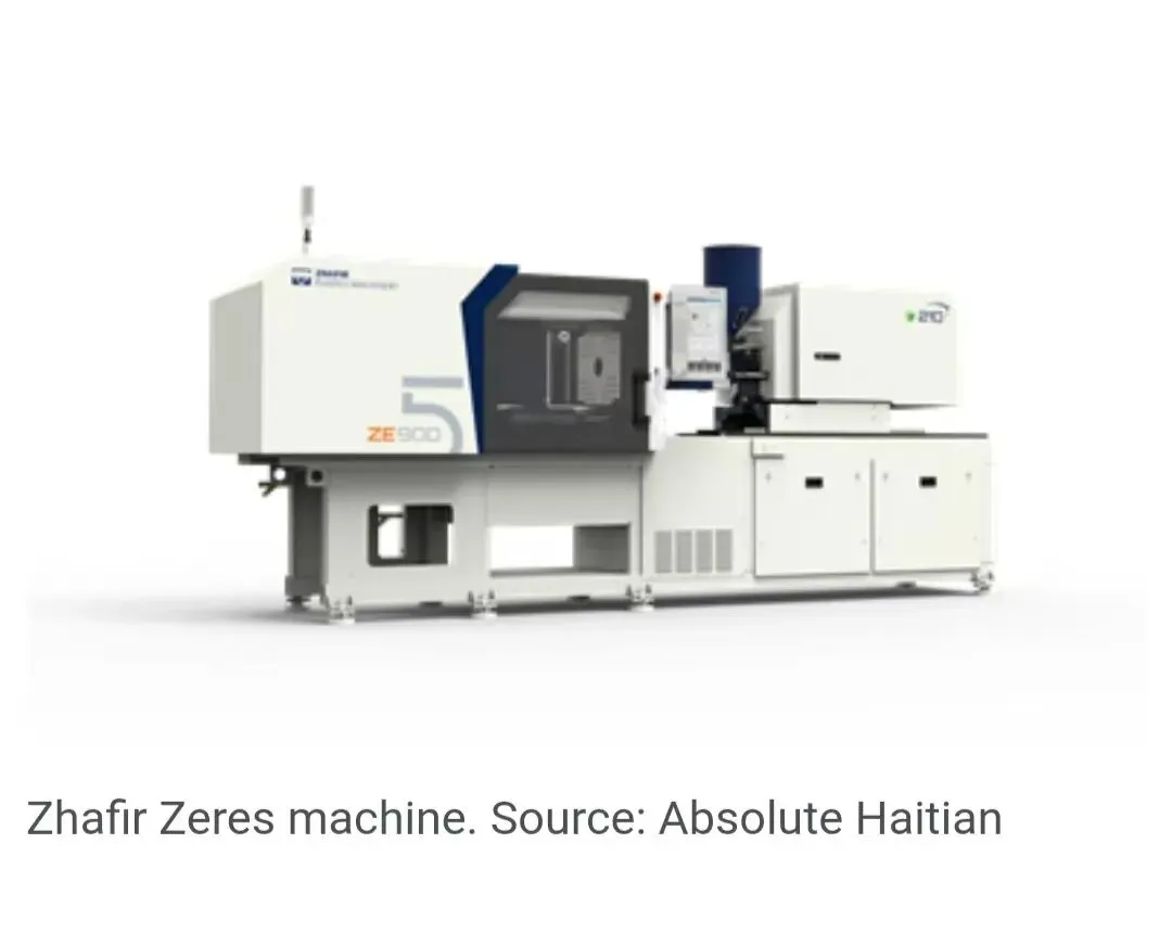 Absolute Haitian 是海天(于2023年收购了日本注塑机制造商新泻/Niigata)的独家经销商,将在其PTXPO展位上展示两款注塑机:一款Zeres混合动力机和一款新泻全电机。135吨的Zhafir系列Zeres将使用一副4腔模具,采用Primatop PPC 350-20 NA抗冲共聚聚丙烯成型1/4英寸锁紧软管夹。重6克的制品将由一台MaxA05-1000全伺服顶入式机械手处理,其有效载荷为5公斤,成型周期为10秒。集成到成型单元控制系统中的还有一台采用RS 485协议的2吨Advantage Engineering冷水机,以及一个通过OPC/UA集成的Gammaflux热流道控制器。