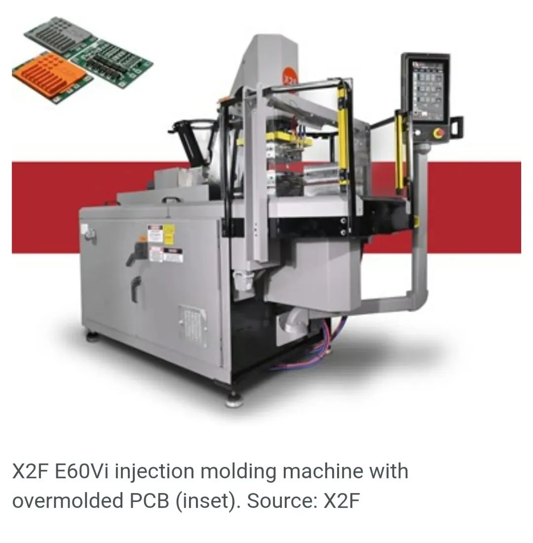 对于许多PTXPO参观者来说,X2F 将是一个新品牌,其机器风格也是全新的。在芝加哥,该公司将使用其X2F E60Vi机器,应用受控粘度成型工艺,在一副双腔嵌件模具中,用导热塑料包覆成型一个印刷电路板(PCB)。