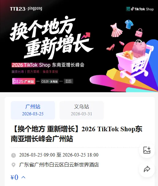 3月25日 【换个地方 重新增长】2026 TikTok Shop东南亚增长峰会广州站