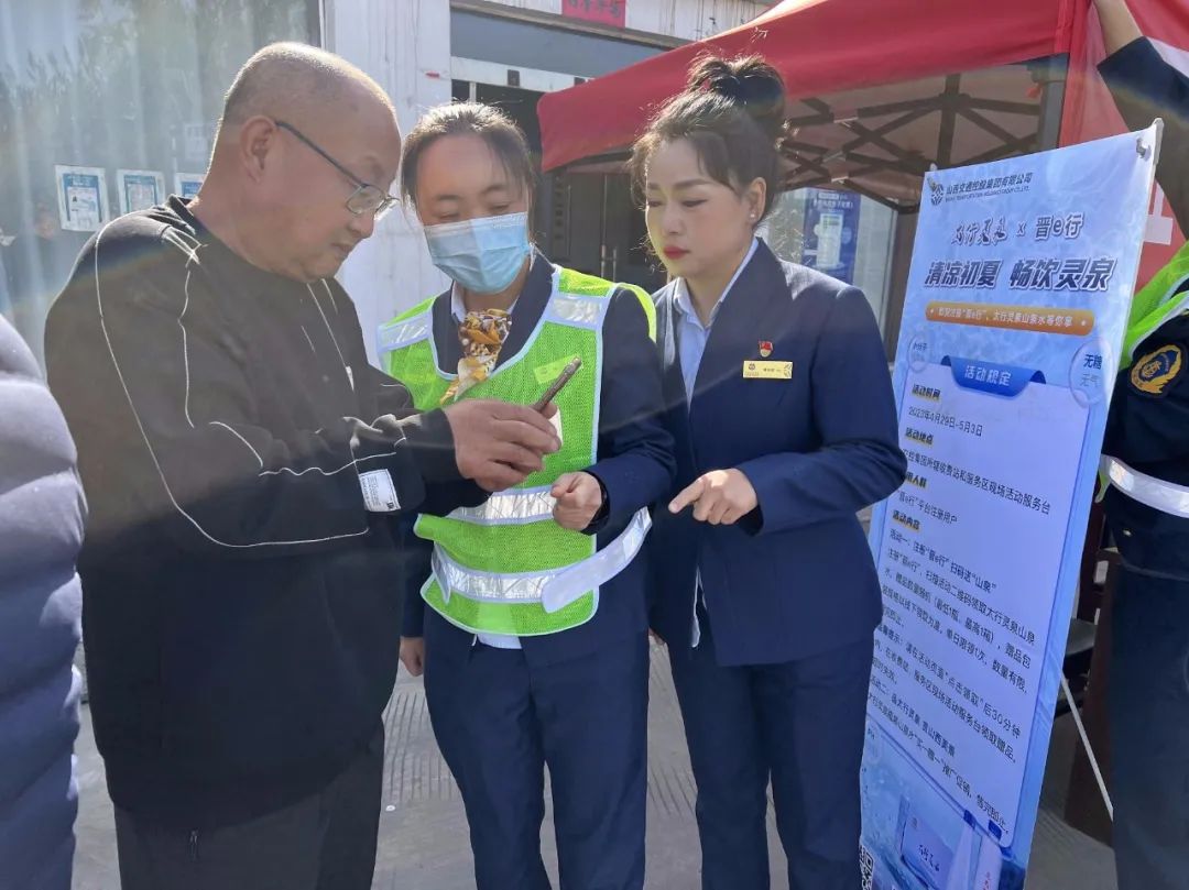各收费站充分利用站区便民服务厅或搭建临时便民服务台,引导过往司乘注册“晋e行”,通过扫描二维码参加领水活动。在介绍游山西“买一赠一”优惠活动的同时,详细解读“晋e行”山西高速公路出行信息服务平台,帮助司乘了解平台所涵盖的实时路况、收费站状态公告、救援服务等功能,并细心讲解高速收费政策、ETC不停车收费的优惠力度和便捷等,为过往司乘提供优质、贴心、热情的服务,增加过往司乘的美好出行体验。