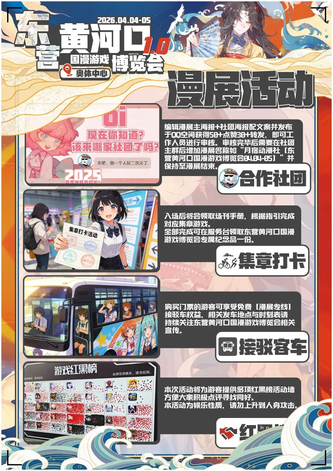 2026年4月4日至4月5日,东营·黄河口国漫游戏博览会,一场属于二次元的狂欢盛宴,等你来嗨!无论你是动漫迷、游戏迷,还是单纯想感受二次元文化的魅力,这里都将给你带来难忘的体验!