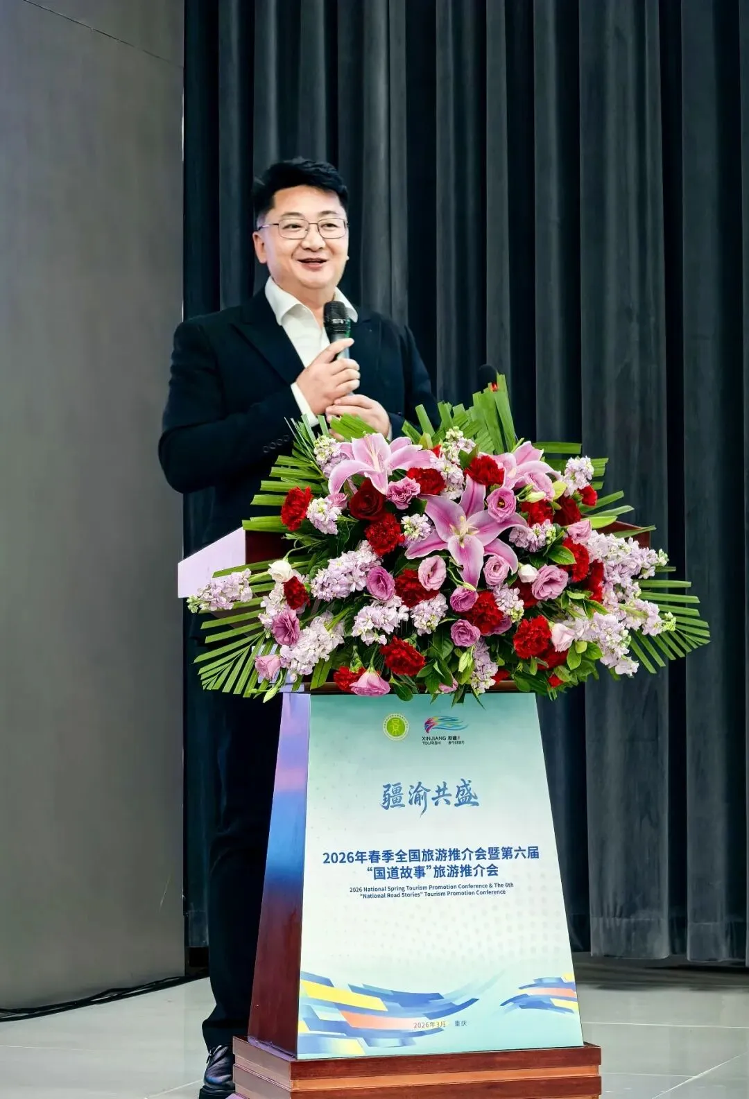 周丹会长在讲话中全面阐述了新疆文旅的整体发展格局,重点介绍了以G219国道为纽带的精品旅游线路。他指出,那拉提作为新疆首家国家旅游度假区,是串联南北疆旅游的重要枢纽,当前正全力打造世界级旅游度假区。他诚挚邀请重庆旅游业界同仁走进新疆、走进那拉提,共同开发高品质旅游产品,共享文旅发展新机遇。