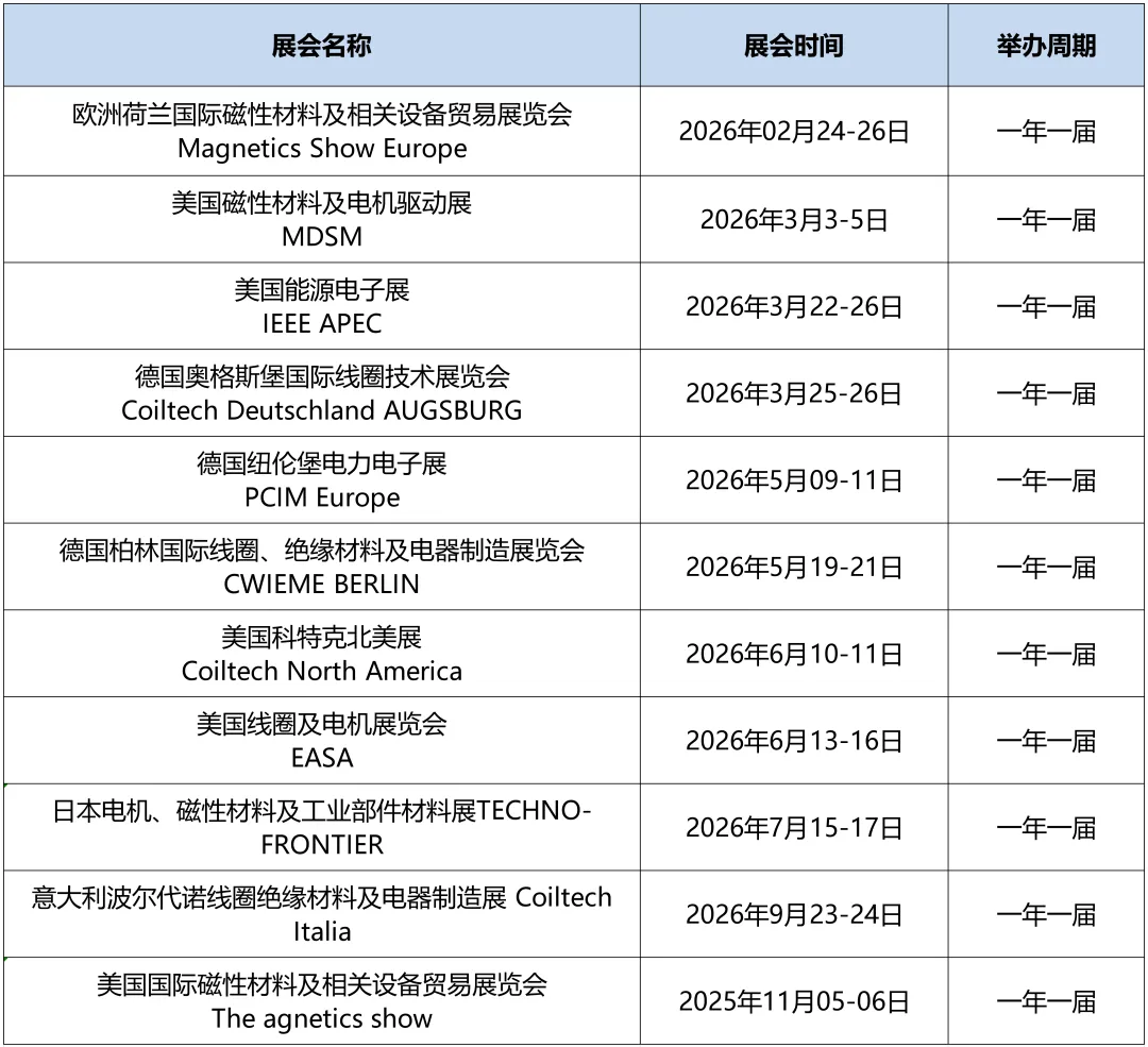 2026年全球线圈磁性材料展会计划表