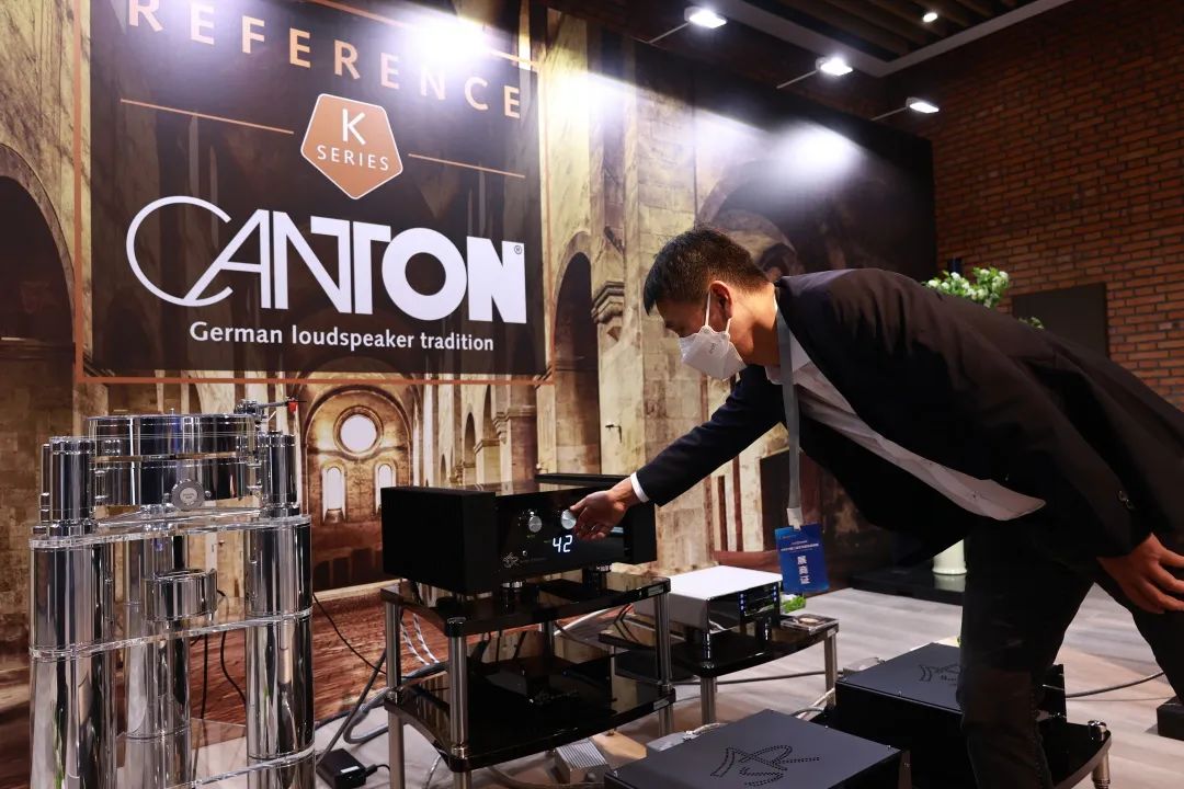 展厅现场使用的是德国CANTON的顶级 Hi-end 音响参考系列1K,方岽清先生在使用德国CANTON音响演示的过程中也表示:1K给他带来了全新的听觉体验和创作灵感,让他更加自由地表达和演绎自己的音乐作品。