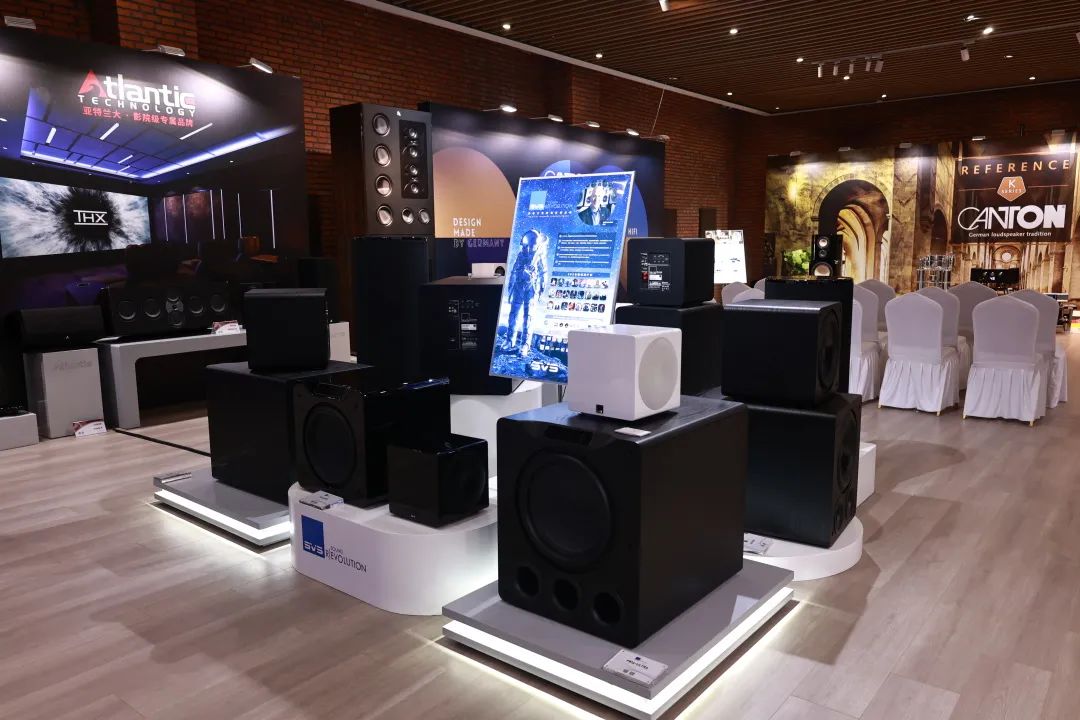 展会现场,音联邦以德国CANTON、美国SVS、美国亚特兰大、美国OSD AUDIO四大品牌展区展示了不同品类的影音产品,满足不同需求下的高品质体验。
