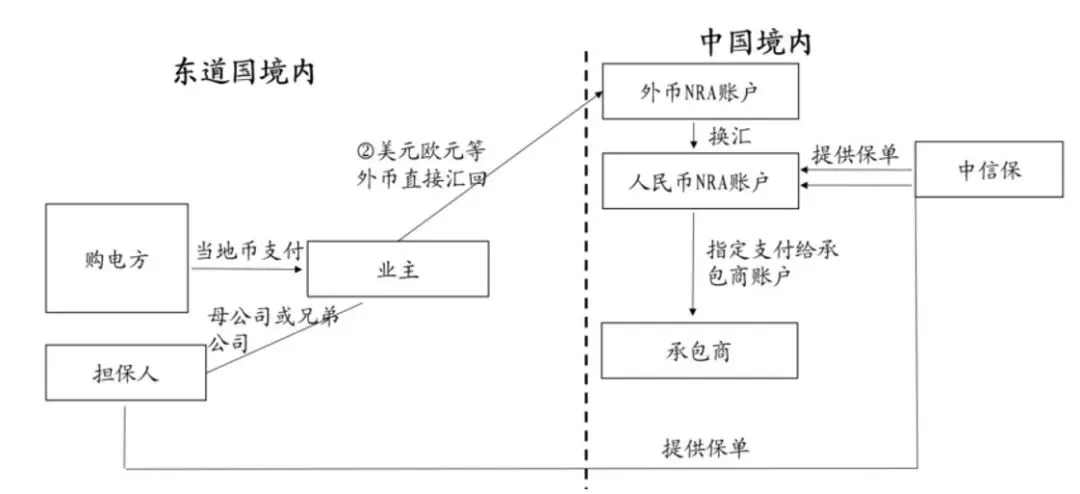 在该融资结构下,X公司完成相应工作量后,业主根据融资补充协议按工程进度签署不可撤销的支付证书,并签署付款承诺函。银行与X公司在融资协议中约定,仅对X公司责任导致的拒付事项以及信保不覆盖的部分承担回购义务。