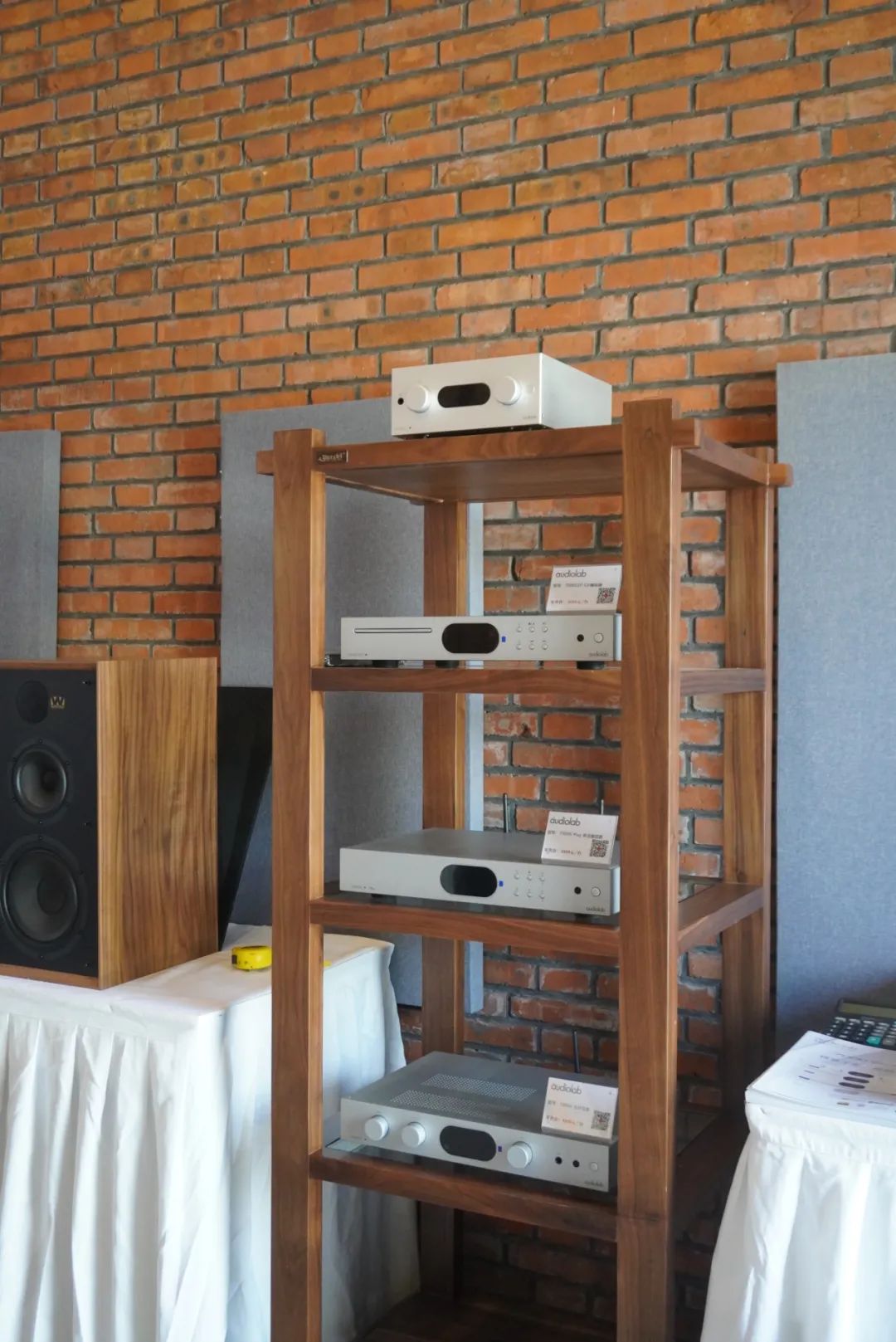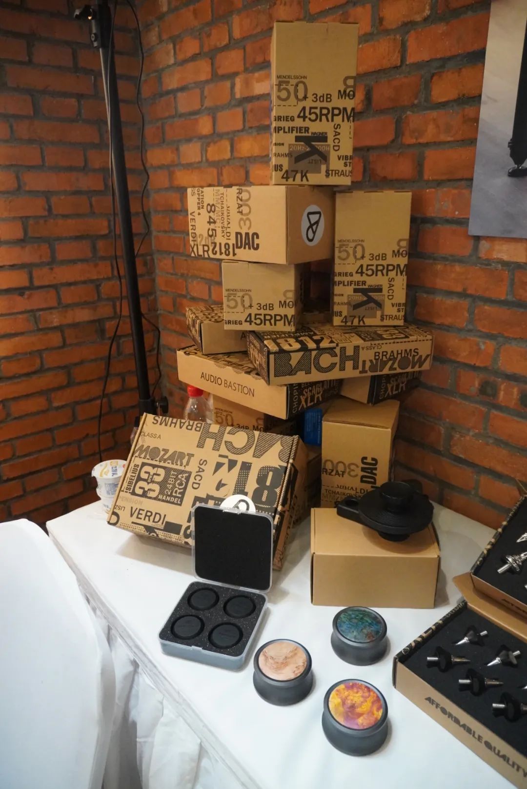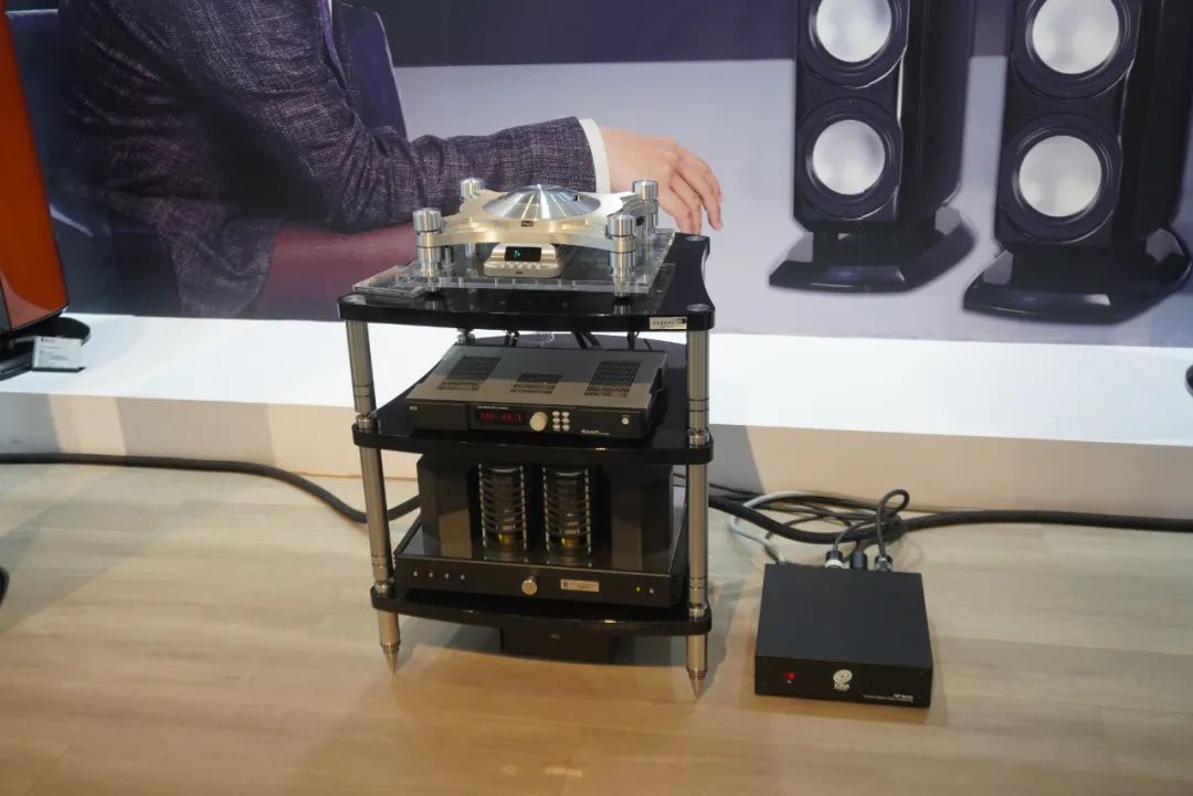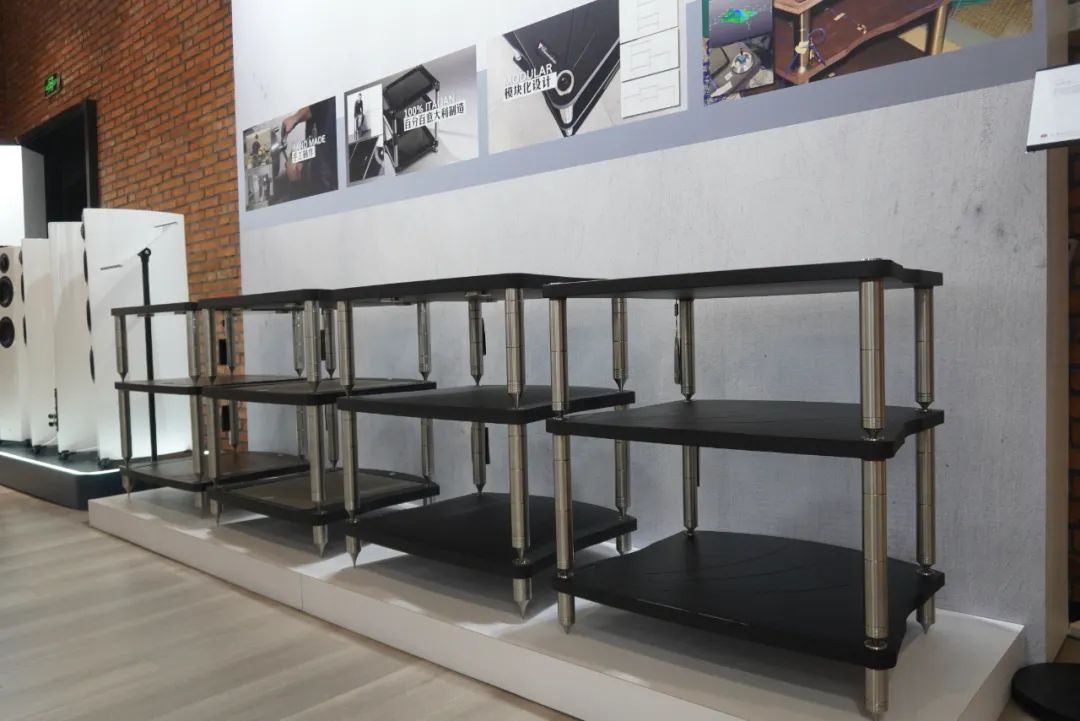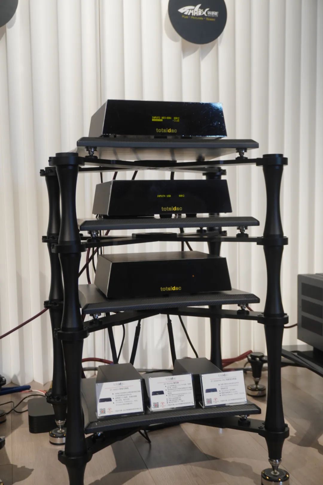 慕陆国际企业带来了Audio Bastion英国爱丁堡的机架和脚垫等附件产品,现场以法国Total播放器和解码器搭配音乐之旅功放以及贵涵的音箱开声。