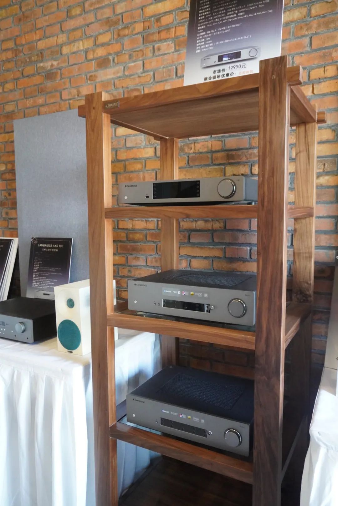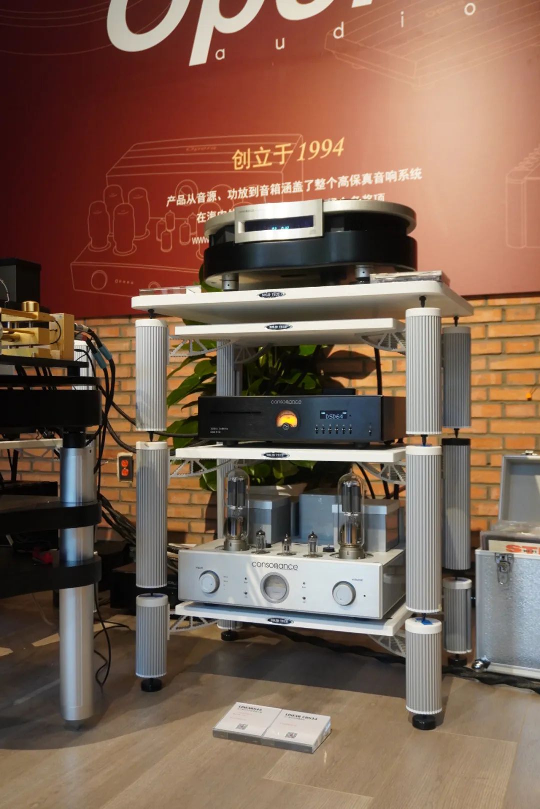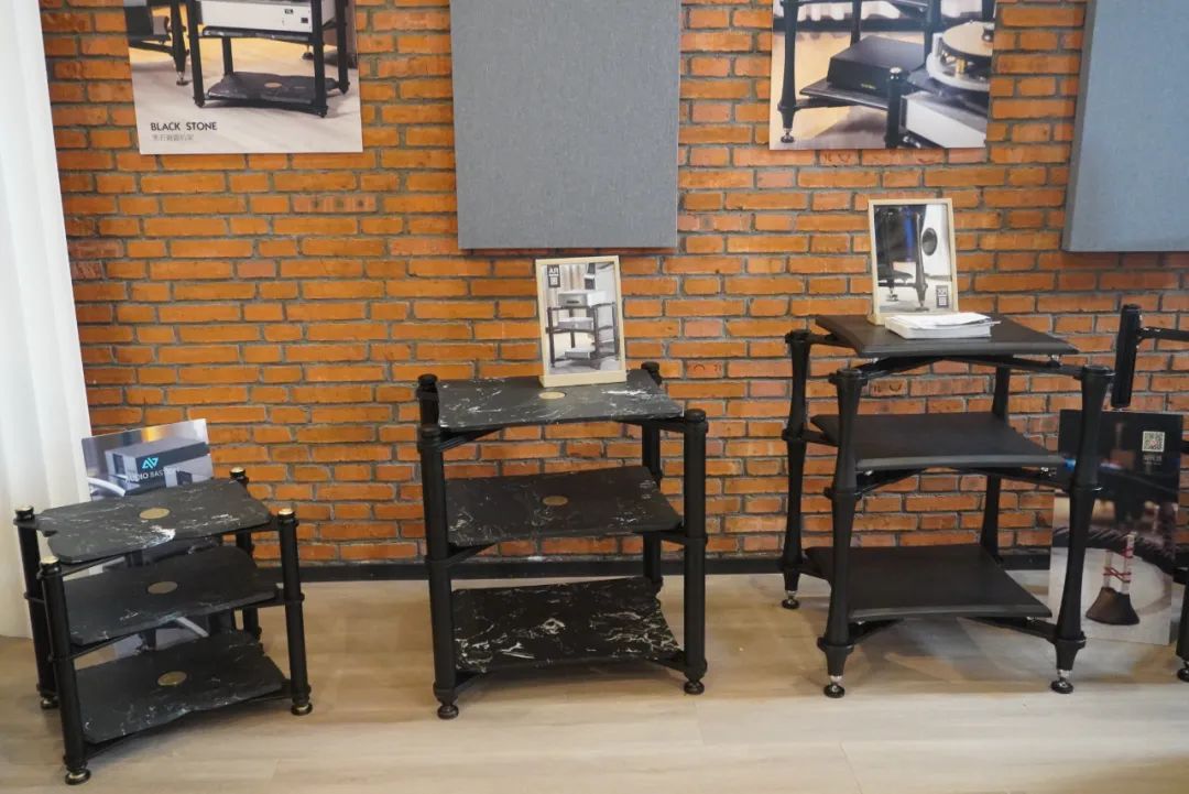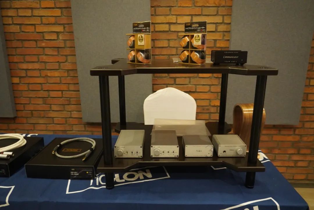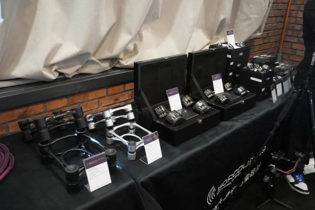 慕陆国际企业带来了Audio Bastion英国爱丁堡的机架和脚垫等附件产品,现场以法国Total播放器和解码器搭配音乐之旅功放以及贵涵的音箱开声。