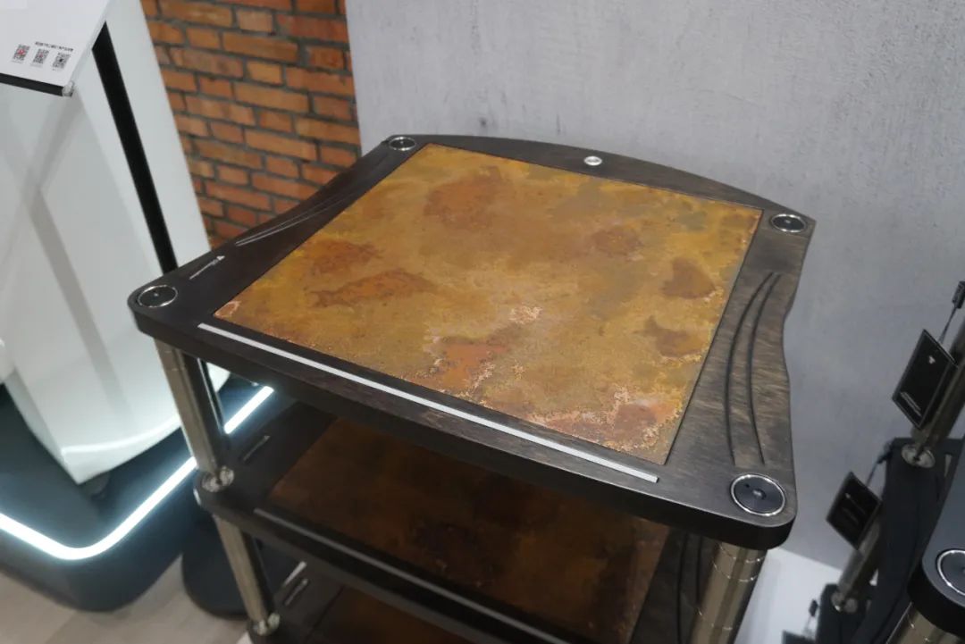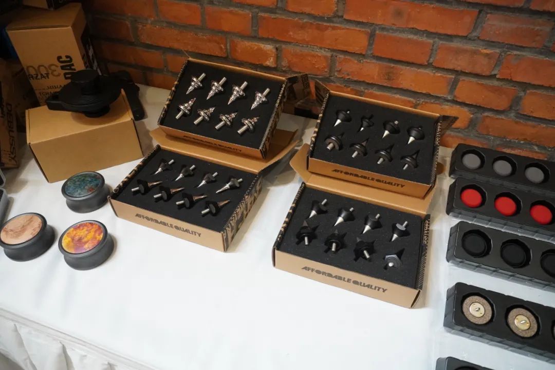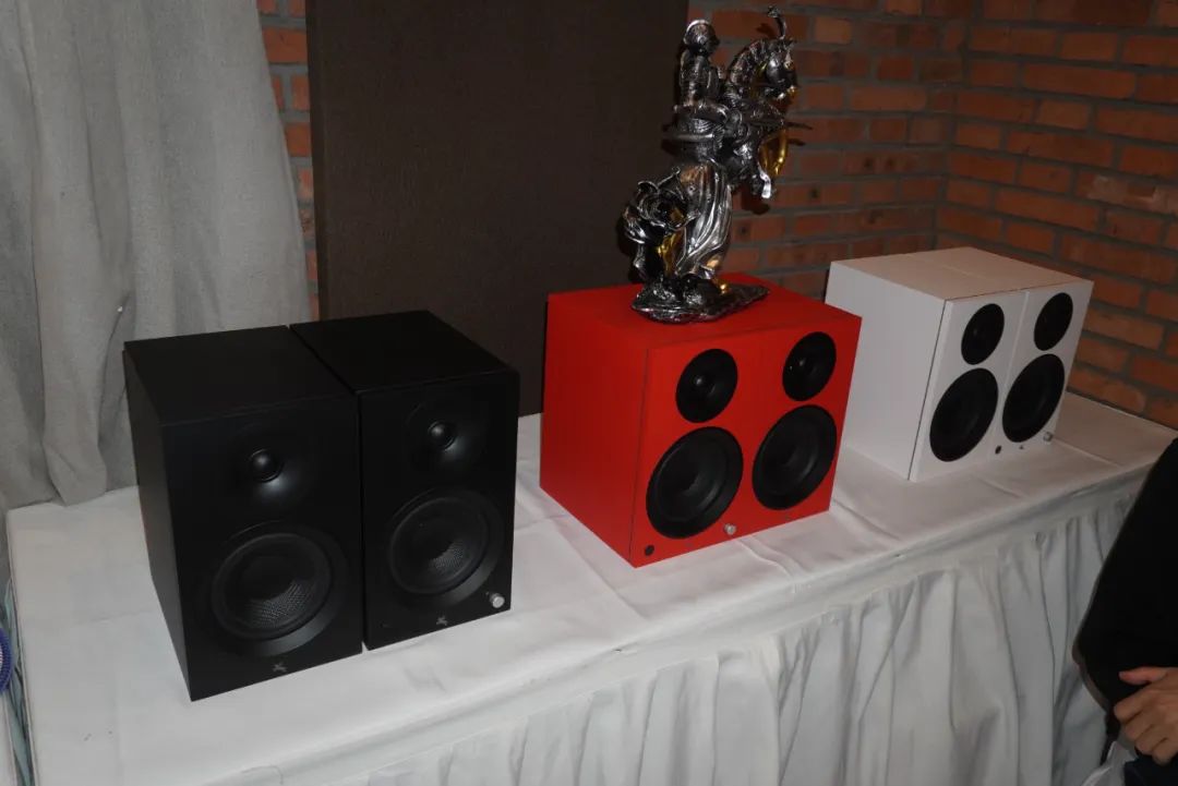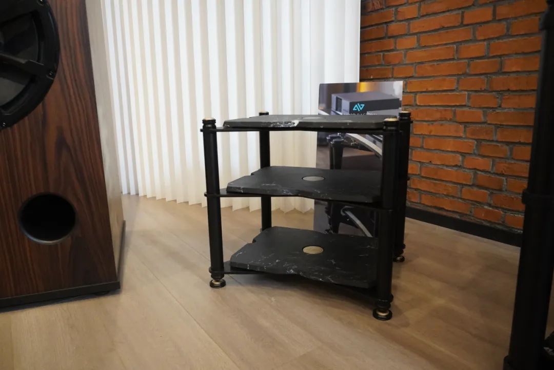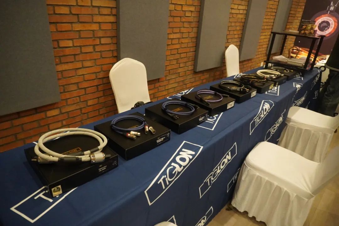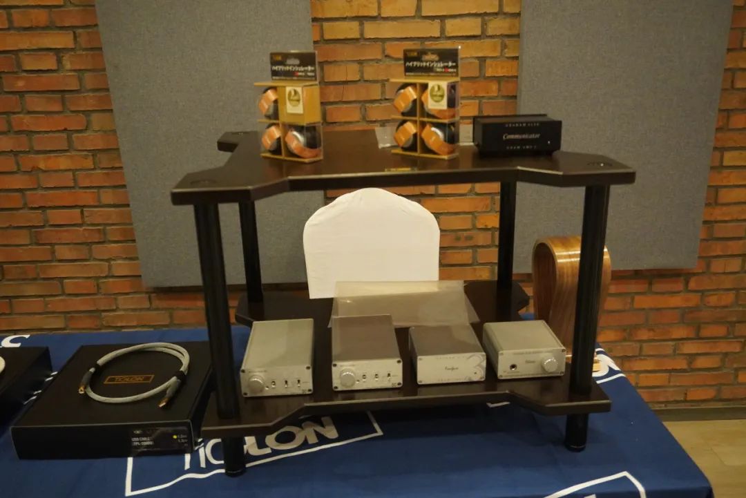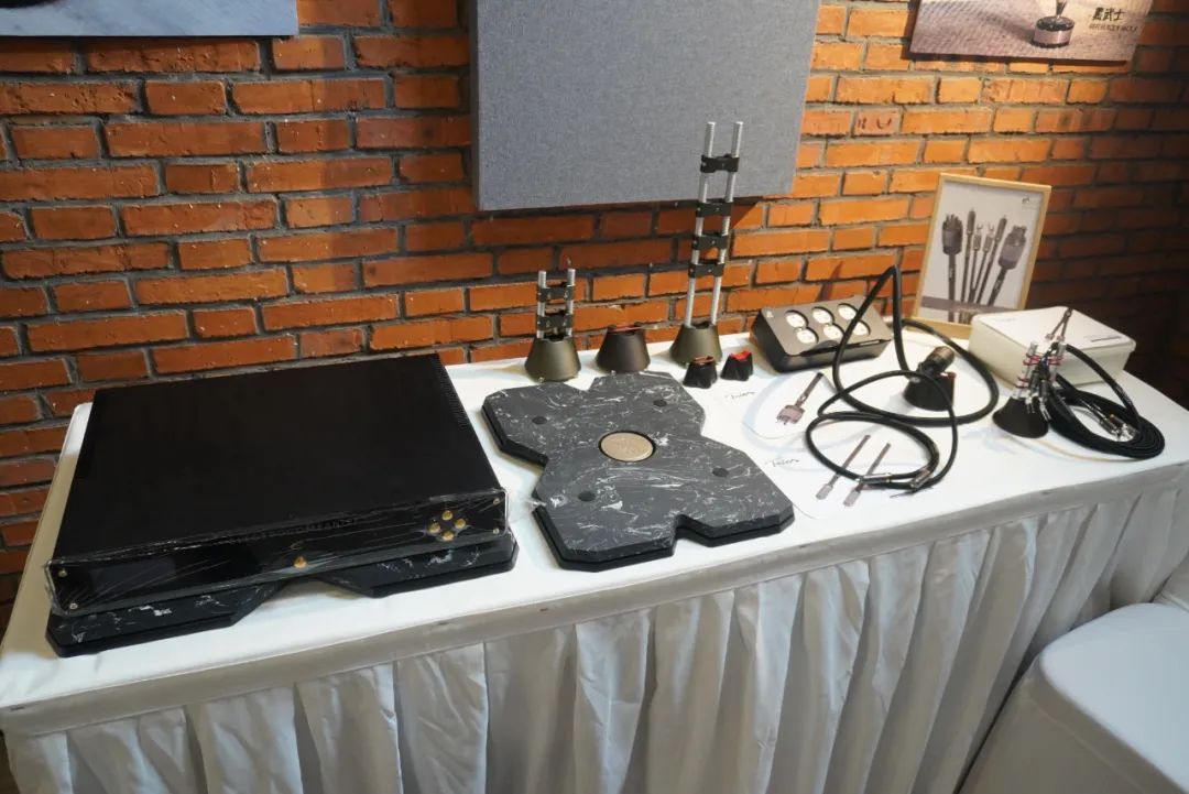 慕陆国际企业带来了Audio Bastion英国爱丁堡的机架和脚垫等附件产品,现场以法国Total播放器和解码器搭配音乐之旅功放以及贵涵的音箱开声。