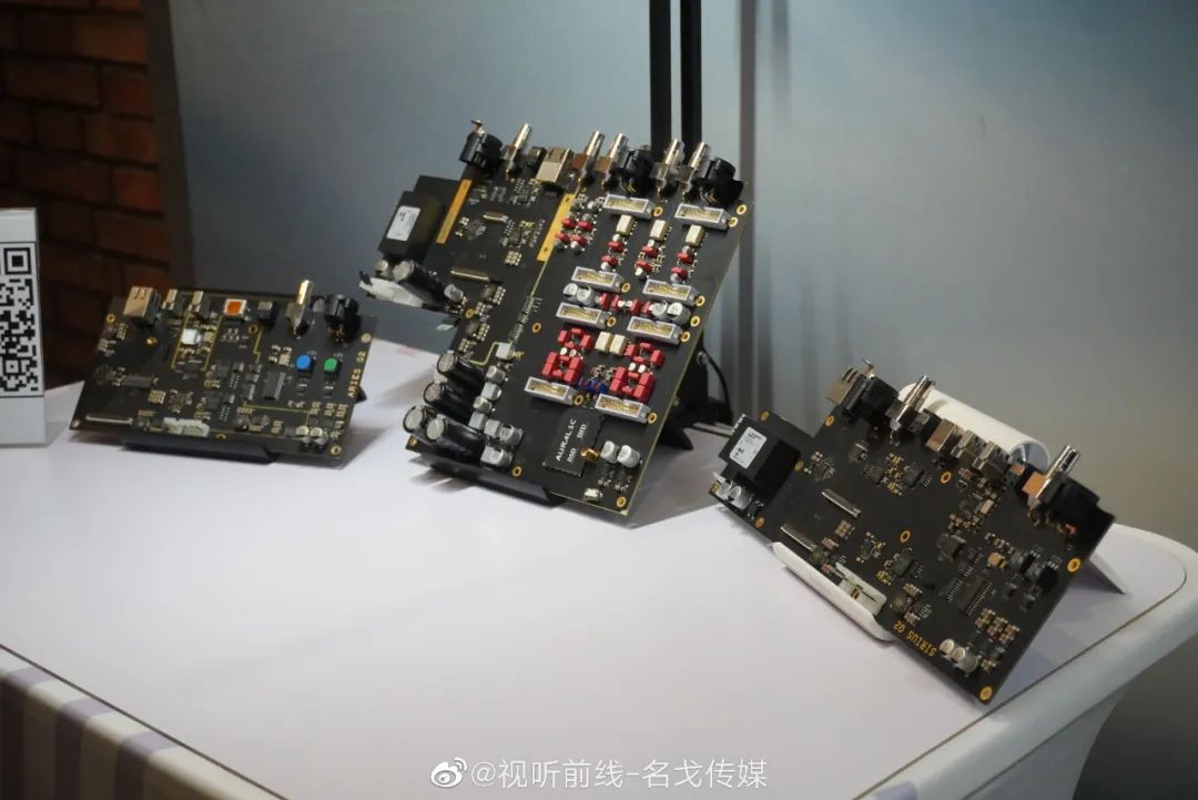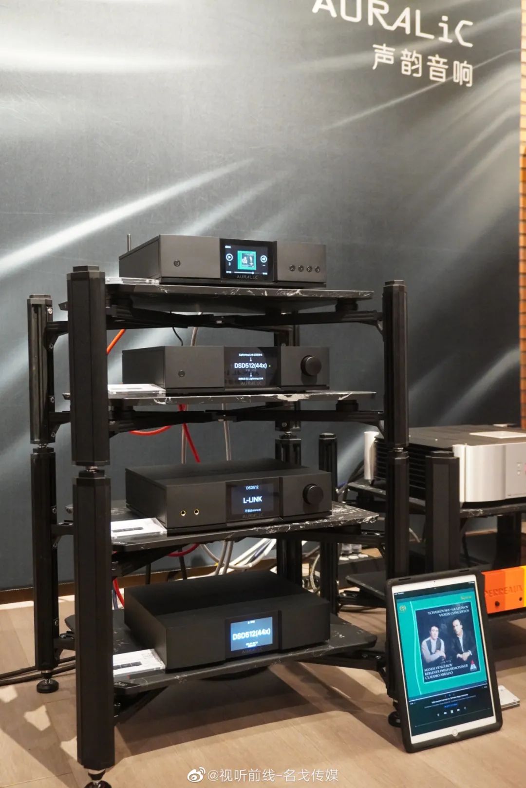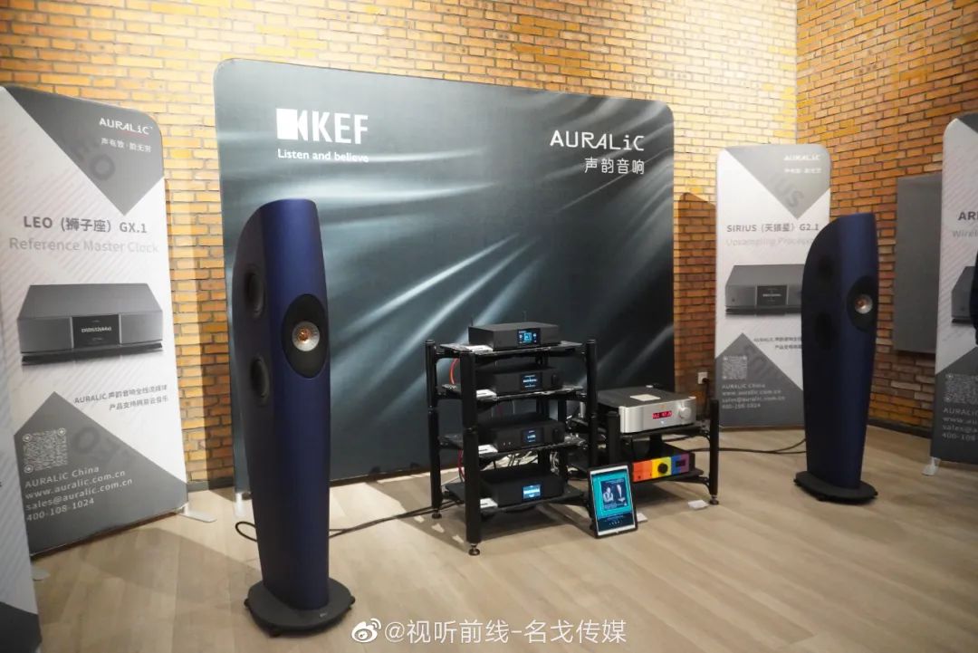 AURALiC声韵音响带来了旗舰G2.1系列四件套产品,搭配KEF Blade刀锋 Two Meta开声示范。部分声韵产品的外壳、电路板也展示出来给观众看。