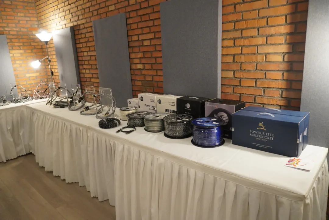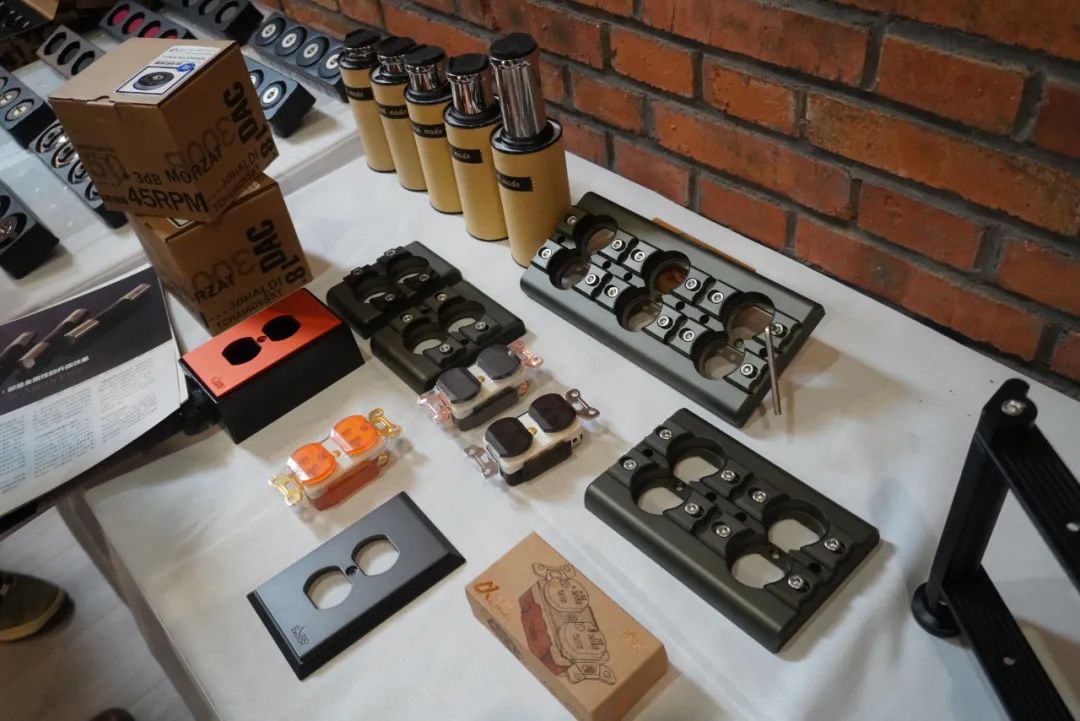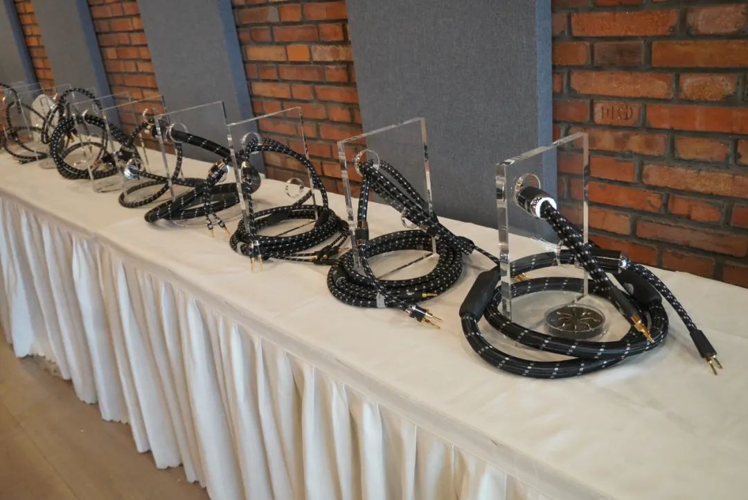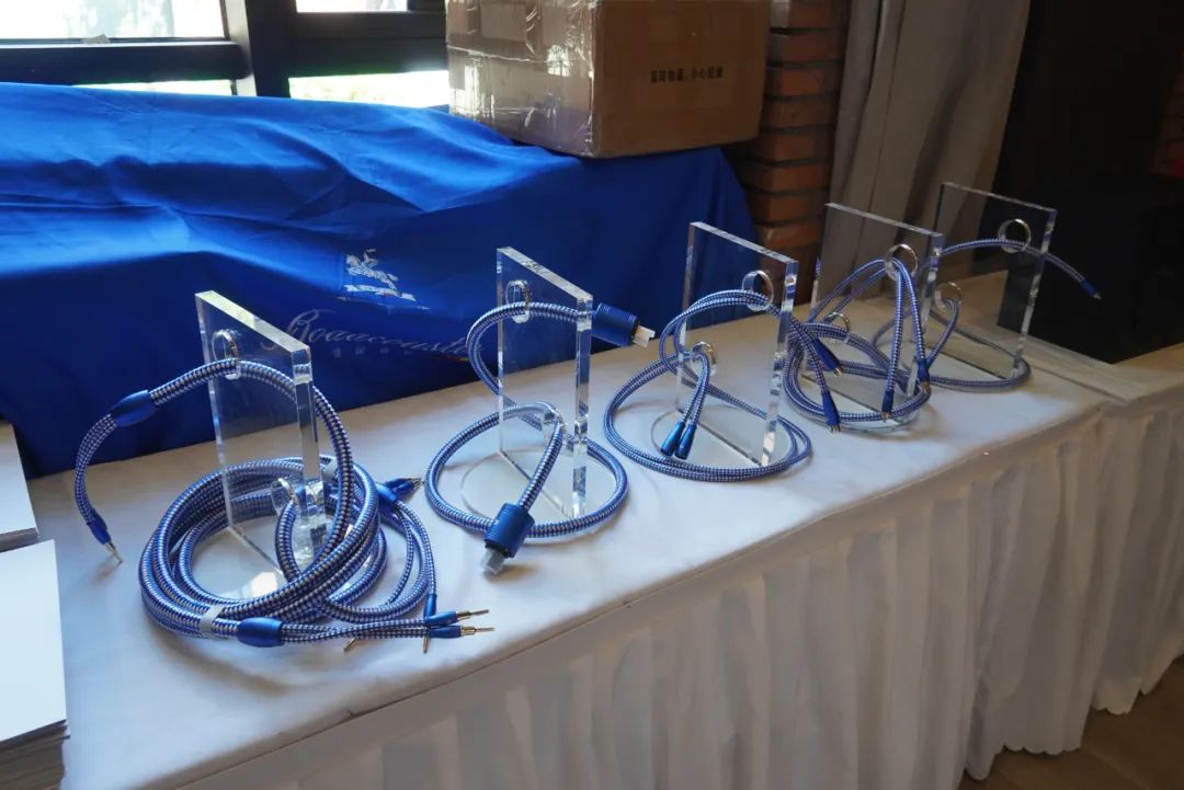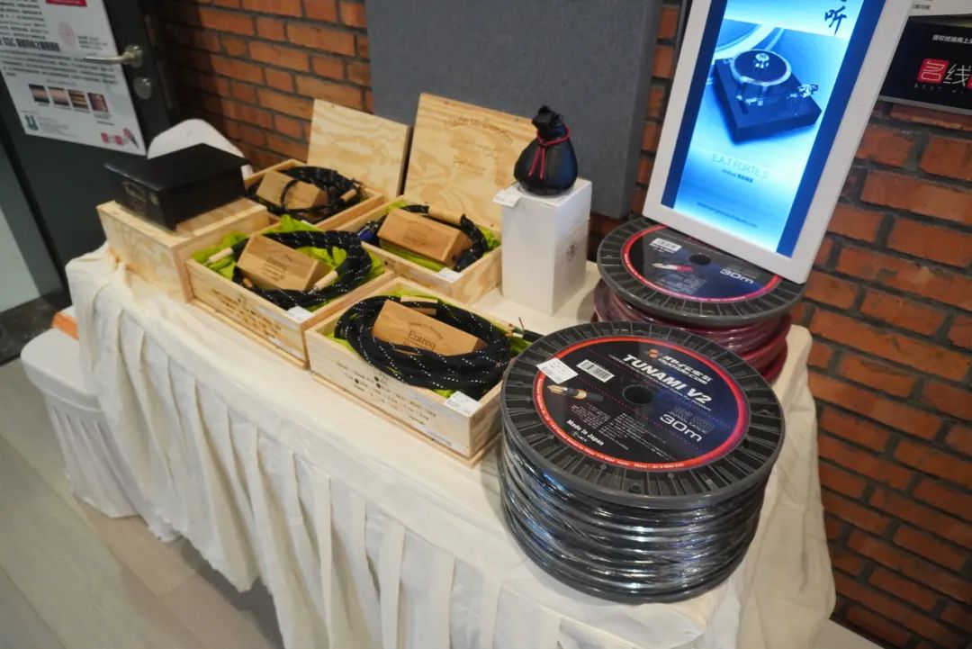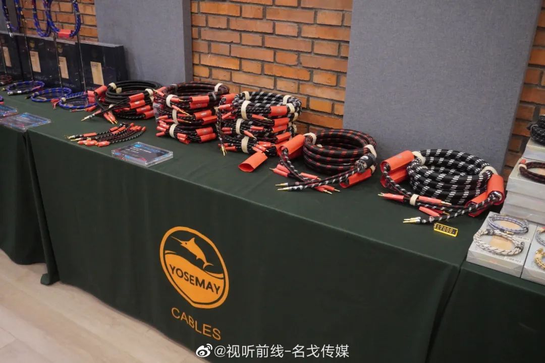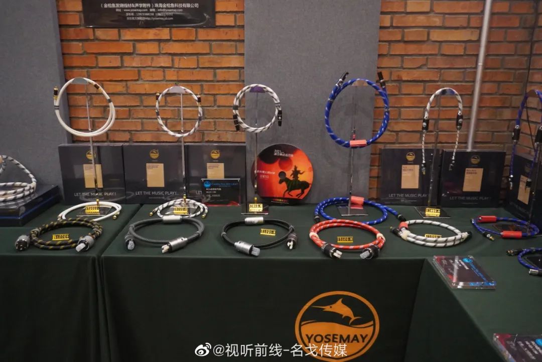 金枪鱼线材带来了旗下各个系列的产品,包括有各式线材、电源排插和电源净化器、线托、避震脚垫等产品