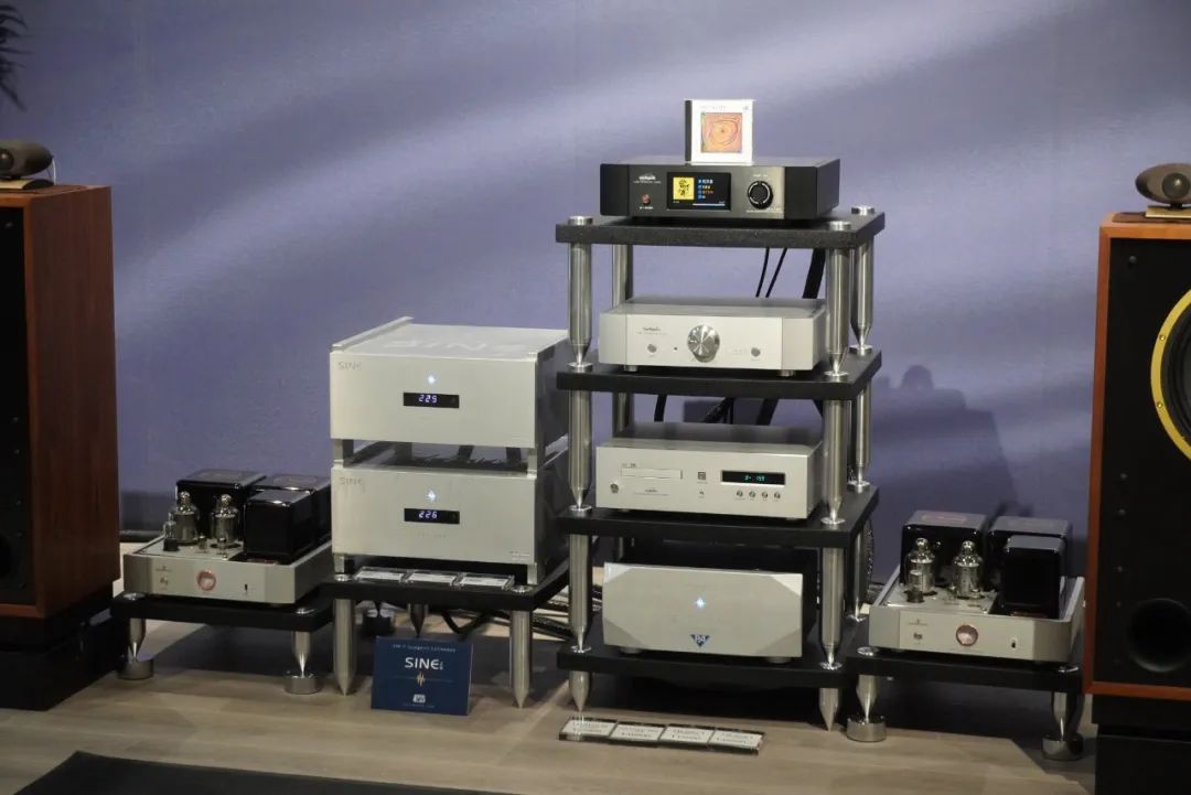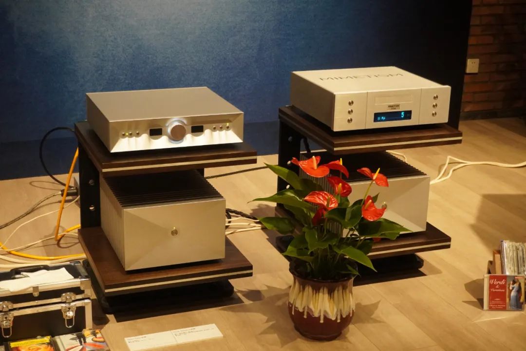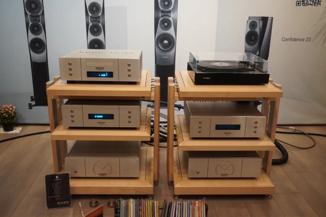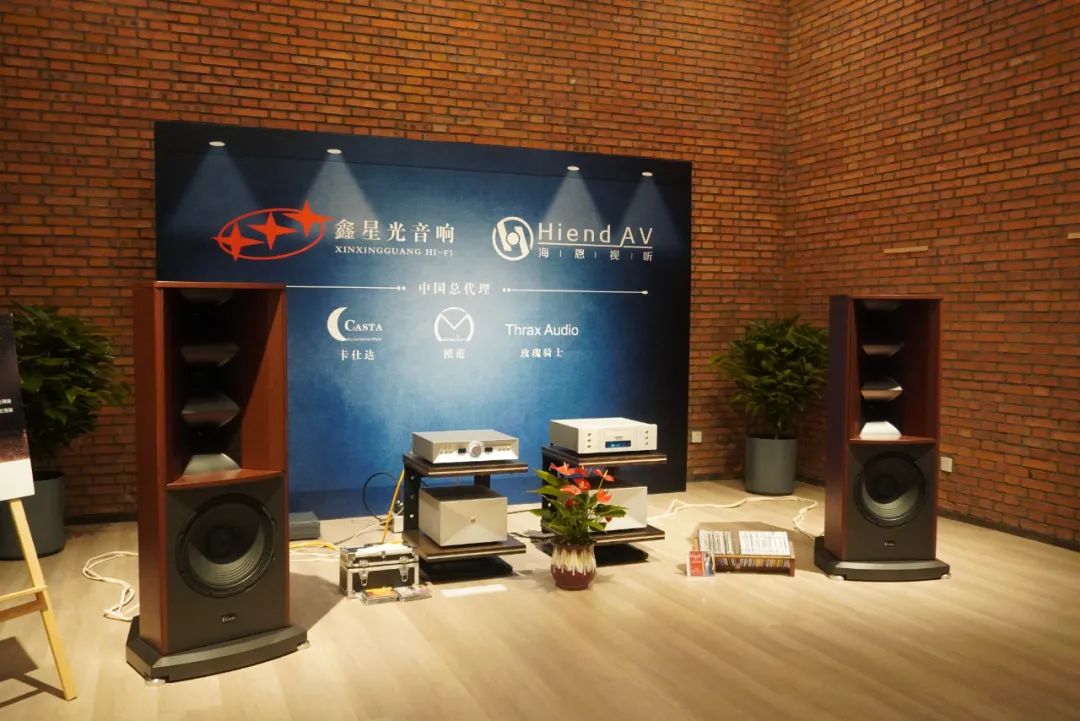鑫星光音响带来了旗下代理的法国模范Mimetism的CD422 CD 机,搭配保加利亚Thrax Audio玫瑰骑士的前后级推动意大利Casta Acoustic Elattra旗舰喇叭开声。