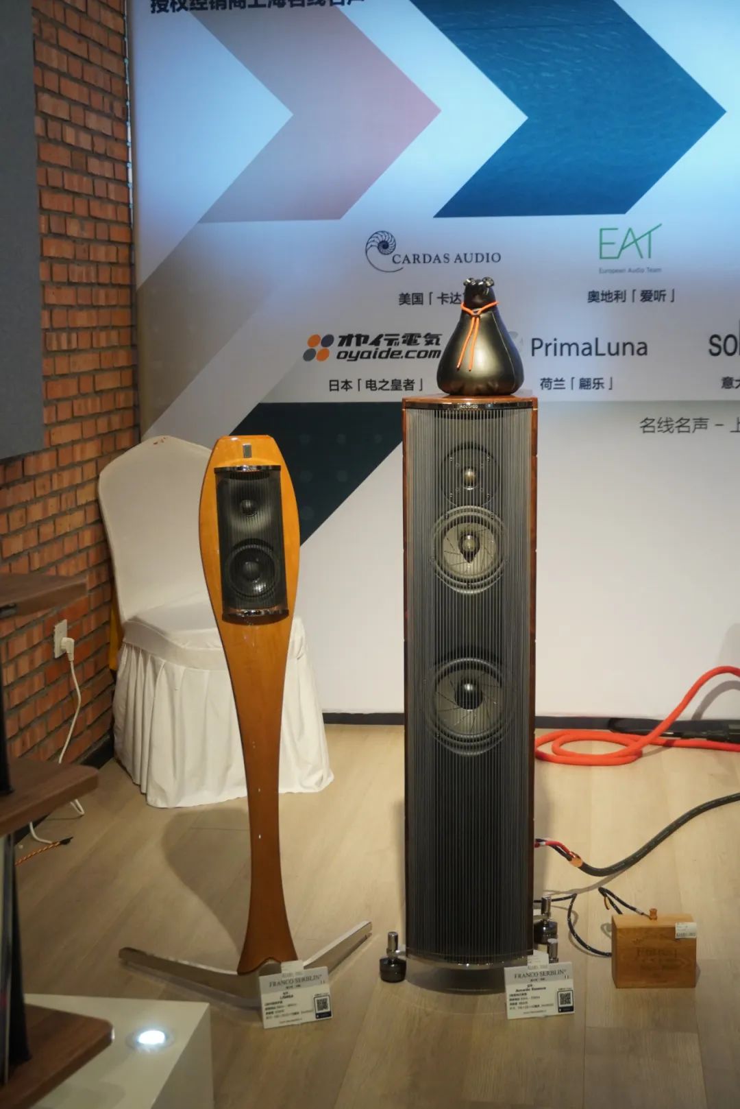 德国蟒蛇JIB&罗马战神带来了旗下8000系列的CD、功放和音箱,此外还有新款的纯银线材,而另外一个展房展示了有源音箱,外观非常特别。