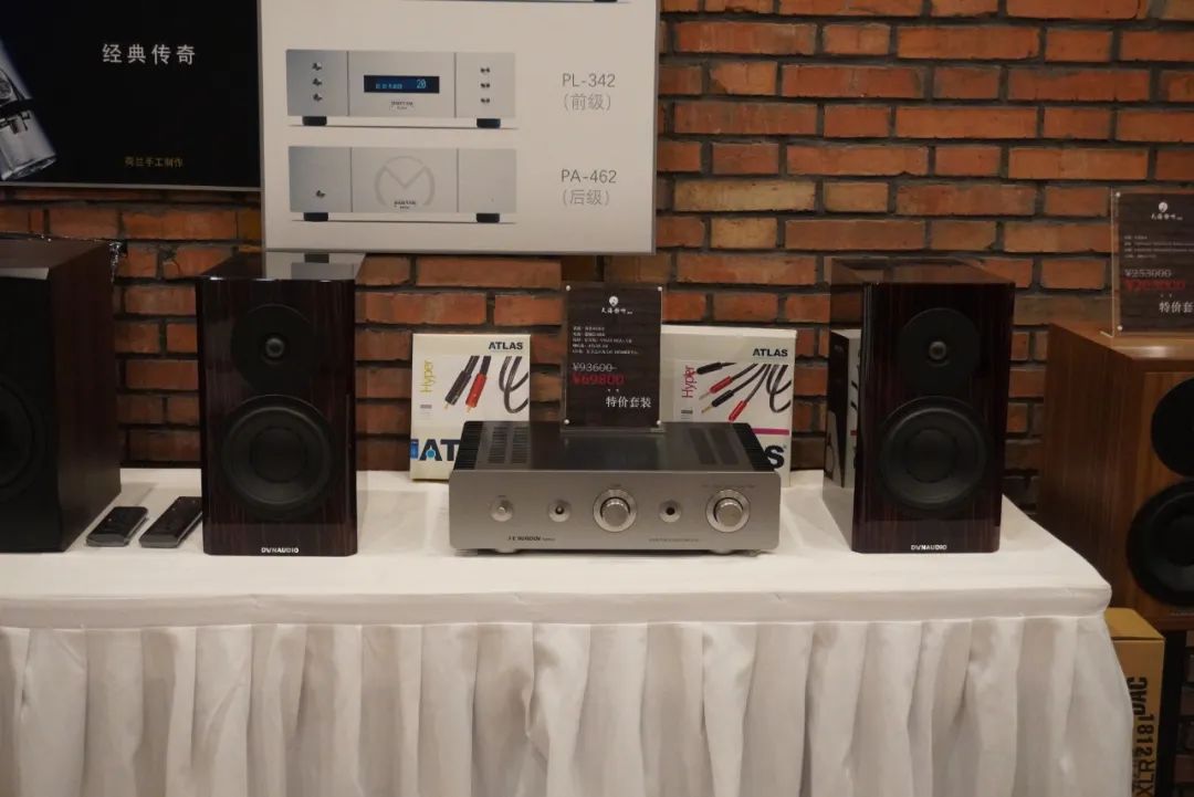 天海静听展出了法国模范Mimetism的CD机和功放推动丹拿信心30音箱开声示范。此外还有丹拿、Jolida等产品静态展示。