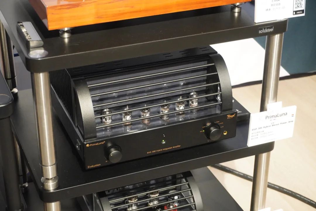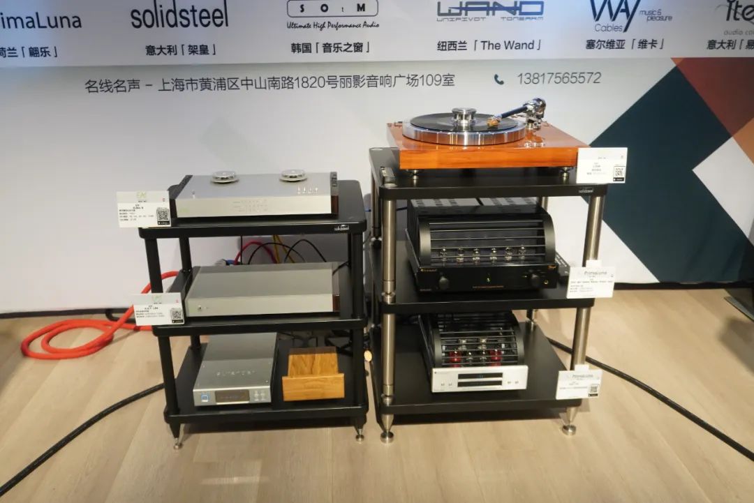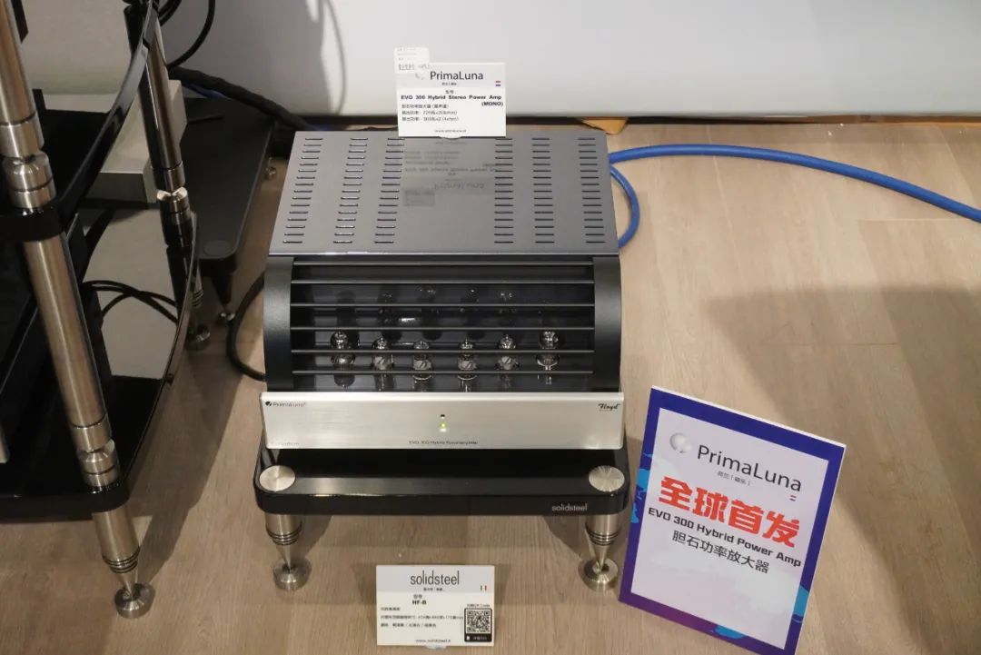 先声音响携手上海名线名声带来了EAT爱听黑胶唱盘、意大利Franco Serblin 梵歌Ktema音箱、荷兰Primaluna胆机等器材,附件方面采用了NBS蛇皇、Oyaide电之皇者、Cardas卡达声、Solidsteel架皇、韩国Sotm音乐视窗产品展示和销售。此次带来了Solidsteel架皇最新的HF Elite系列以及Primaluna EVO 300 Hybrid胆石混合后级。