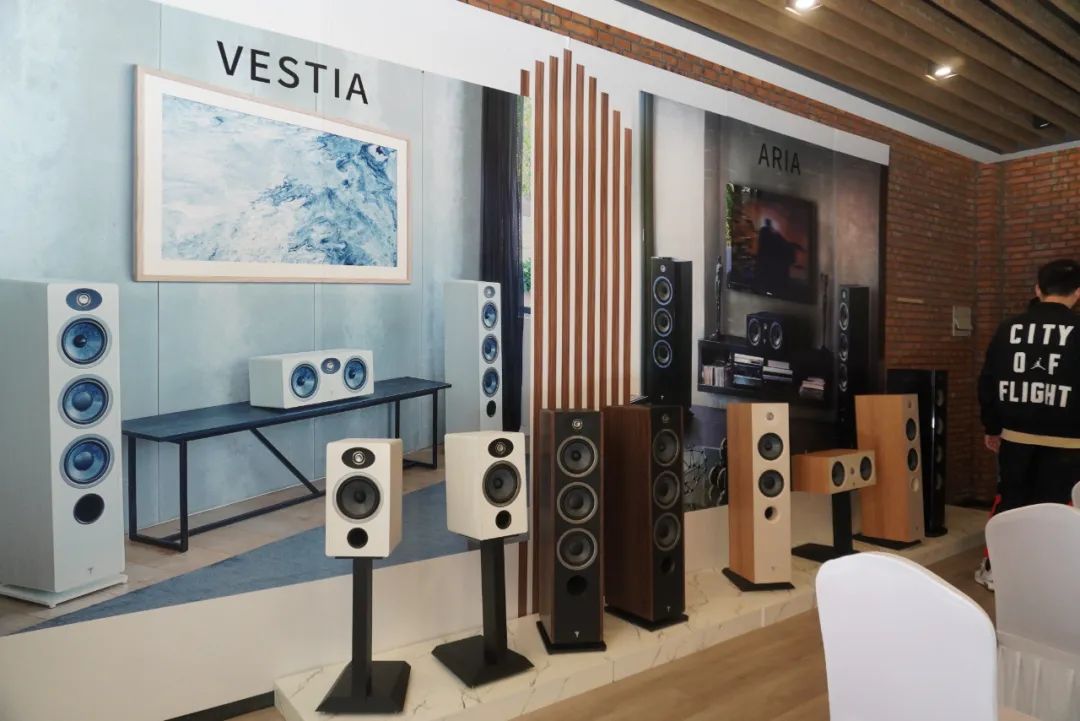 东方铭电携爱威影音带来了Focal的VESTIA系列、AIRA系列以及定制安装和户外音箱等产品。