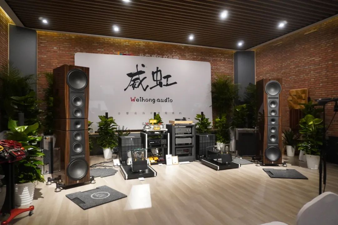 威虹音响有两个展房,其中一个展出了德国冠廷lansche Audio旗舰 NO 9.2音箱,德国Engströmsound气韵生动eric单声道后级, 德国巅峰Synästec 旗舰Saxum 后级、德国巅峰Synästec 旗舰Ignicul唱放,荷兰梅塔克斯METAXAS&SINS PAPILLON旗舰开盘机,德国原音博士DR.FEICKERT火鸟Firebird黑胶唱盘;另一个展房展出了最新代理的意大利zingail号令旗舰落地箱3.18,搭配爱因斯坦全套旗舰黑胶唱盘、唱放、前后级系统和巅峰旗舰CD机开声示范。此外,威虹旗下的奥地利FalkenOhr猎鹰机架,瑞典SolidTech索力达机架,捷克Xavian诗韵,保加利亚APL Hi-Fi,德国OdeonAudio奥丁,美国LAMM莱恩,法国Esprit斯捷线材等等产品也悉数到场。