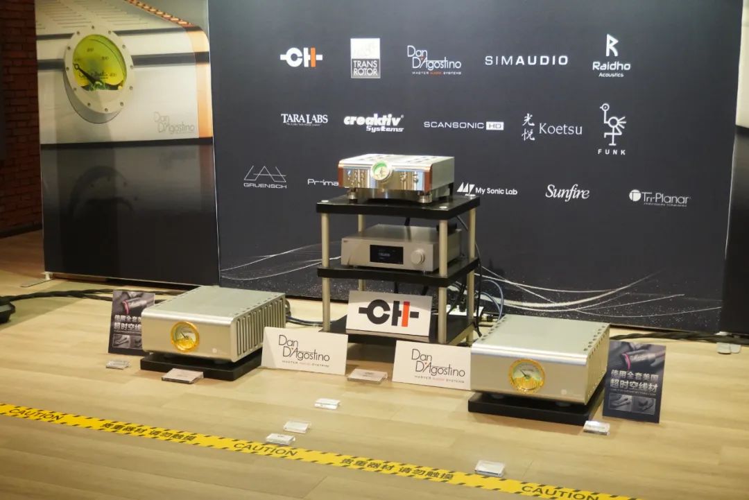 乐燊贸易带来了大丹Dan D'Agostino Momentum HD 前置放大器,Progression M600后级功放推锐都Raidho Acoustics D5.1旗舰级喇叭。此外,乐燊旗下的JR唱盘、Simaudio惊雷、Scansonic HD丹麦世家等产品也在现场静态展示。