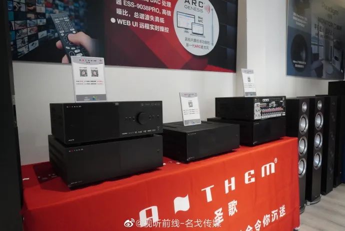 北昌影音展出了REVEL(锐威)和ARCAM(雅俊)的多款产品,这次展会中共有两个展房,一个以Hi-Fi试听和陈列为主,包括有定制安装产品、REVEL PERFORMA BE与CONCERTA2系列等等。另外一个房间则以PERFORMA BE系列音箱与雅俊环绕声解码器+后级功放搭建了沉浸式影院系统进行示范。