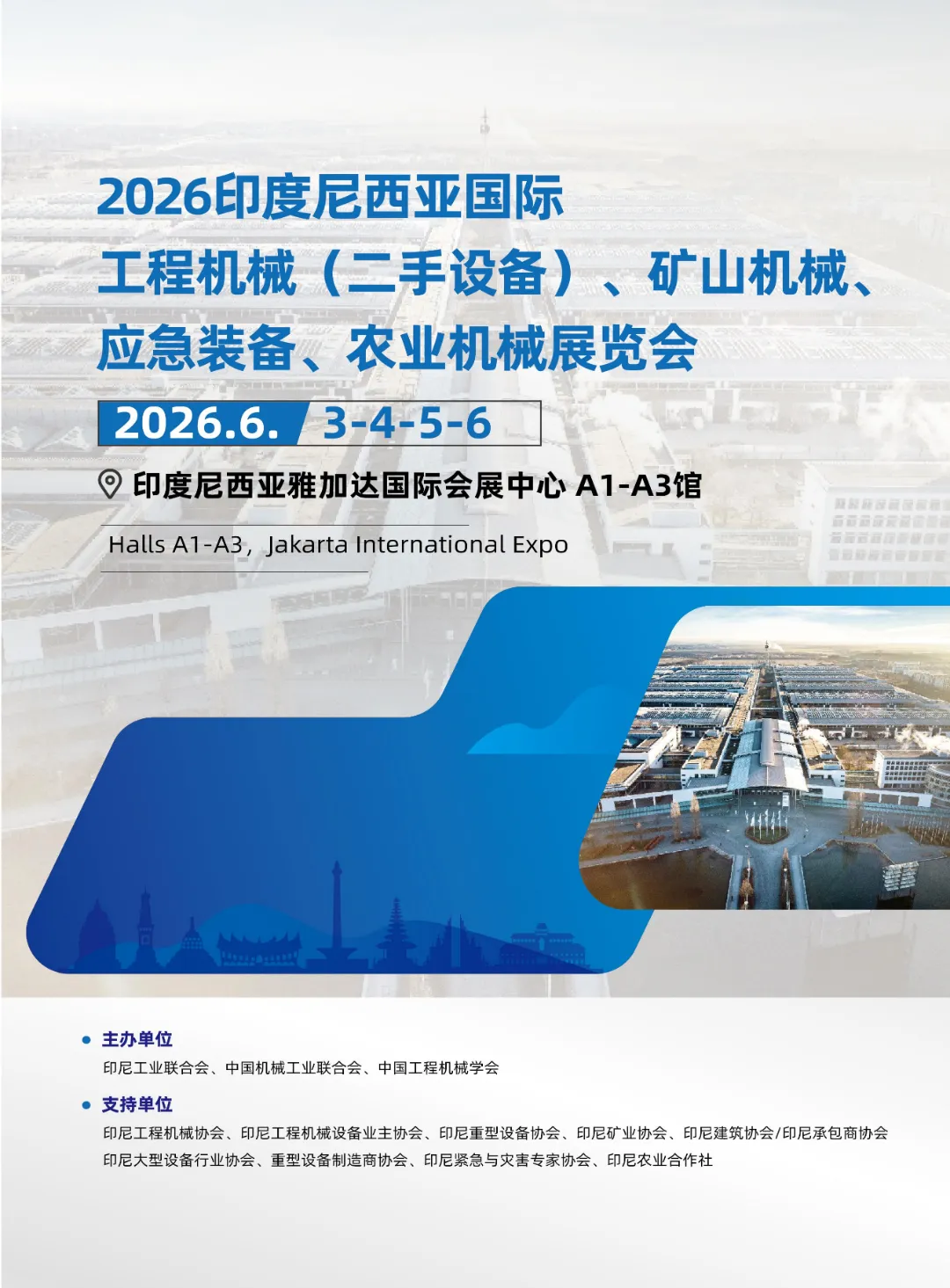 2026印度尼西亚国际工程机械(二手设备)、矿山机械、应急装备、农业机械展览会将于2026年6月3-6日,在印度尼西亚雅加达国际会展中心举行。