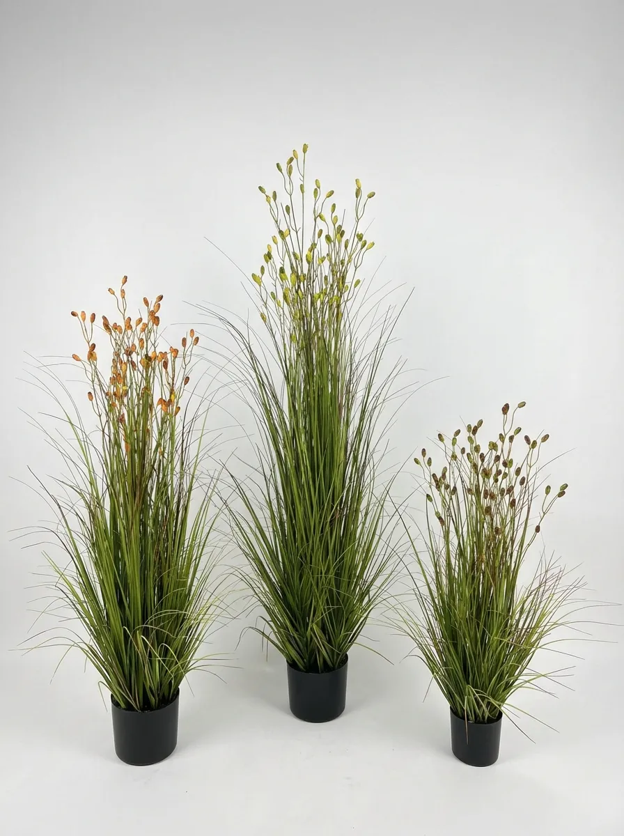 Based on real ornamental grass, it restores the shape of slender and elegant grass leaves and full fruit spikes. Orange-yellow, tender green, dark brown and other multi-colored fruit spikes can be selected, which can easily create a relaxed and natural wild atmosphere.