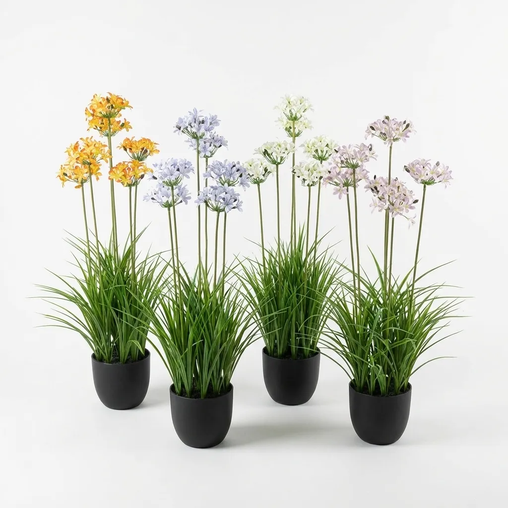 提供橙黄、浅蓝、纯白、淡粉等多种花色选择,完美复刻真实百子莲的清新雅致,轻松适配现代、北欧、田园等多种空间风格。