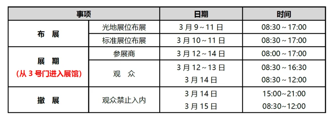 进馆/布展和撤馆/撤展时间表