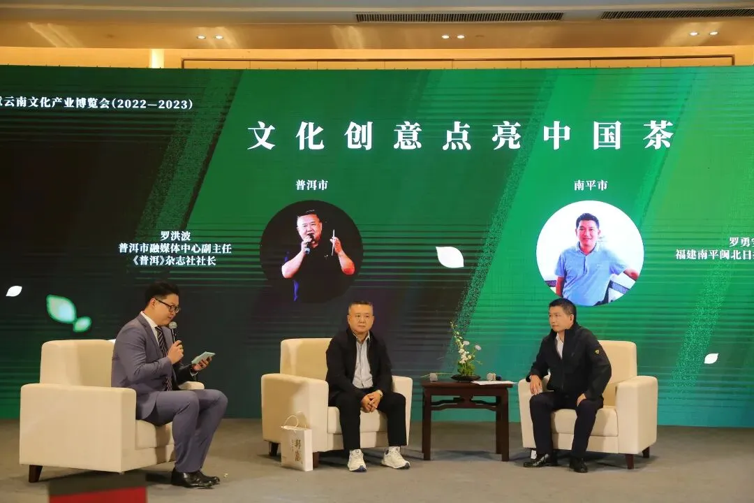 10月21日下午,由中共云南省委宣传部指导、中共普洱市委宣传部主办的创意云南文化产业博览会(2022—2023)“茶与茶的对话”论坛在昆明举行。论坛以“世界文化遗产景迈山、武夷山生态文明建设”为主题,搭建跨区域的茶文化交流、互动平台,探讨和寻求跨区域合作的契机。清华大学国家文化产业研究中心主任、中国传媒大学发展研究院院长、世界茶文化论坛组委会主席熊澄宇,普洱市委副书记、市委宣传部部长任远征出席并致辞。