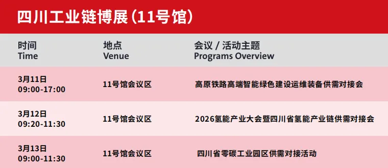 四川工业链博展作为成都工博会服务四川重点产业建圈强链的核心展区,集聚“氢能+轨交+零碳+未来产业“四大展区,携100余家产业链企业亮相2026成都工博会。