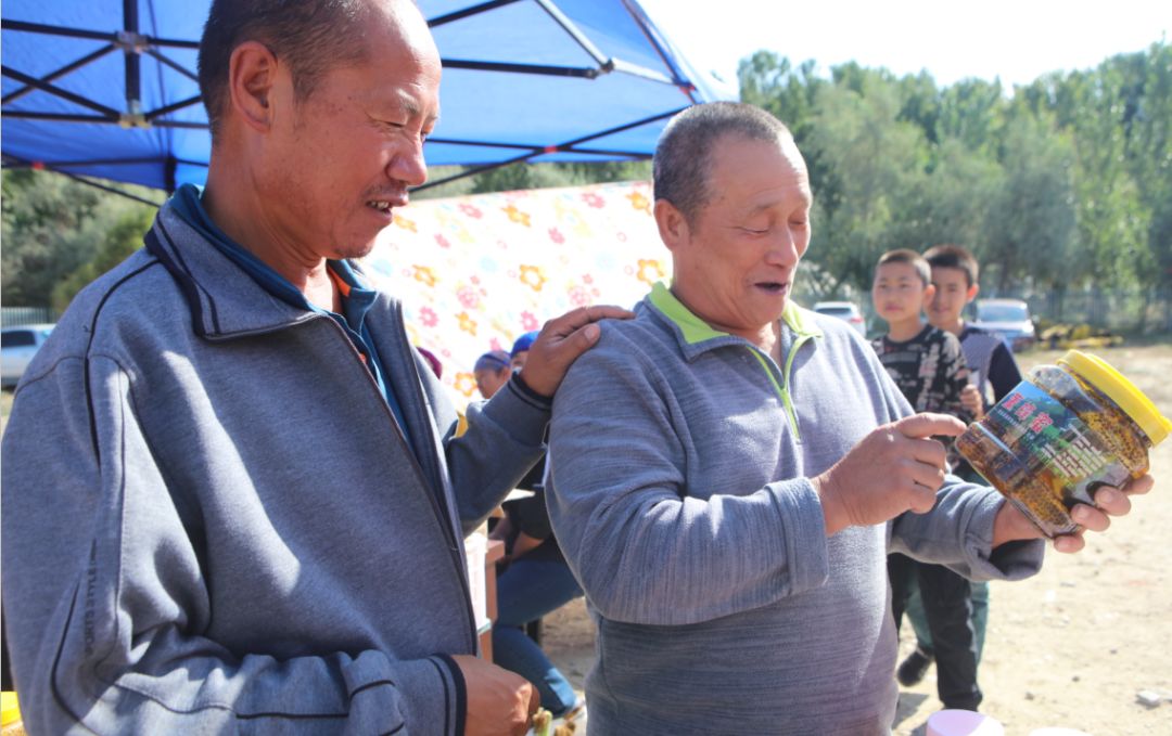 萨尔塔木乡却限村村民董同运说:“我们家蜂蜜就是没有任何添加剂,属于纯天然,品种也很多,春天四月份生产沙枣蜂蜜,五六月份生产百花蜜,七八月份生产葵花蜜。”已有40多年养蜂经验的董同运,不仅摸索出了养蜂技术,还成为人人羡慕的致富能手。他的有机蜂蜜,在展销会上颇受欢迎。