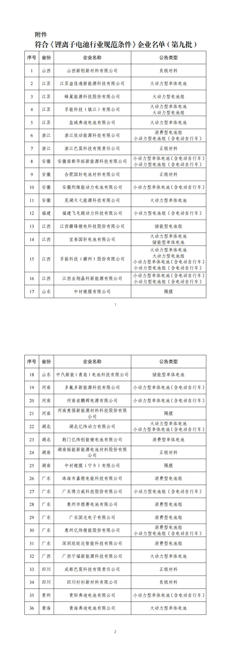 附件:符合《锂离子电池行业规范条件》企业名单(第九批)