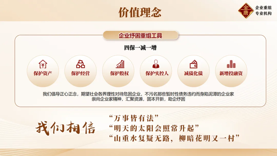 困境面前,跑路不是出路。专业纾困、止血化债、盘活资产、合规重生,才是危企正确的破局之路。