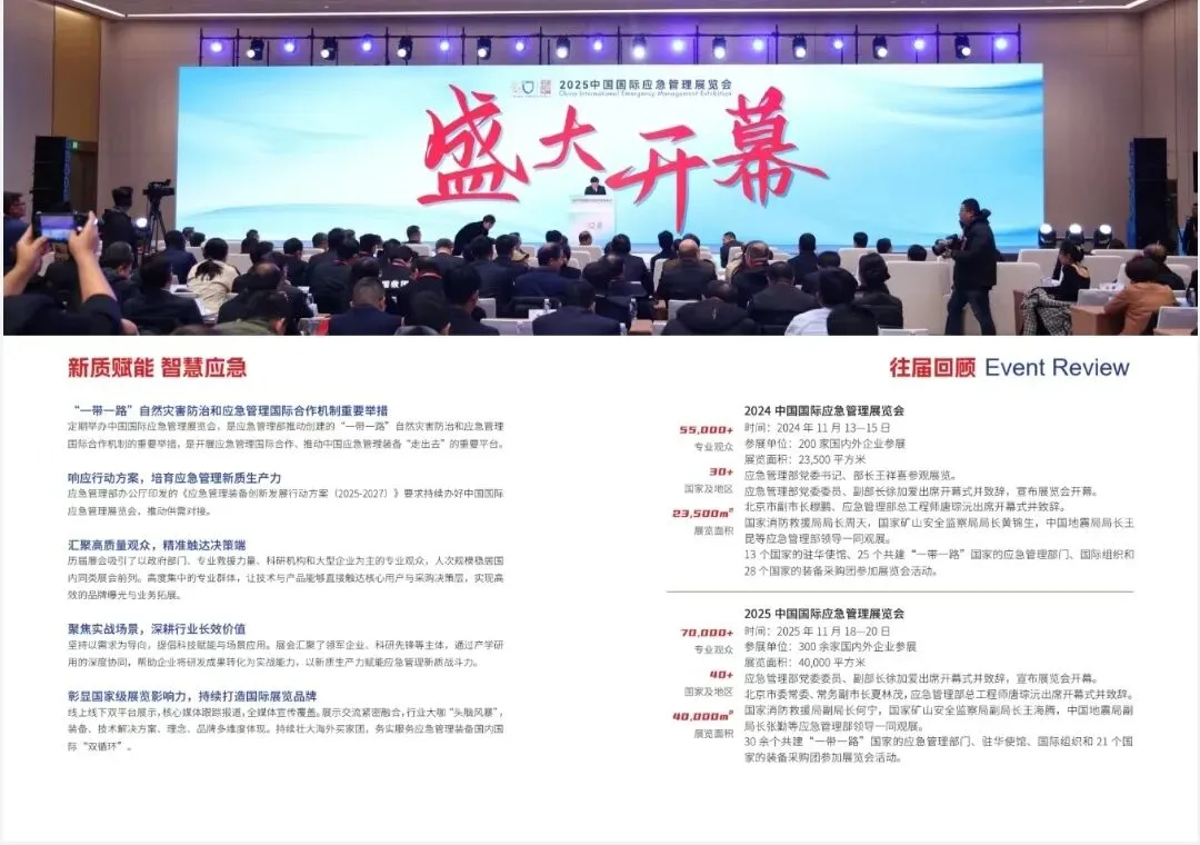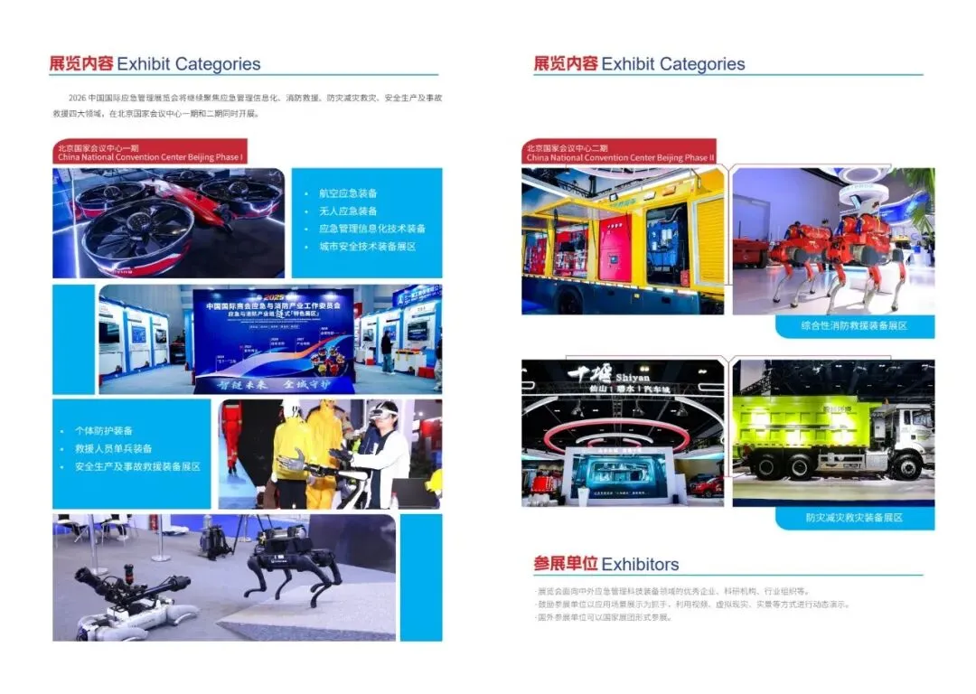聚焦四大领域,分国家会议中心一期、二期展出,覆盖应急管理全产业链装备与技术: