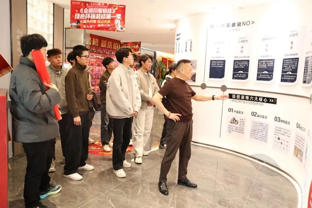 同学们在企业负责人的热情带领下,有序参观了企业的办公环境、荣誉展示区、材料展厅及工艺展示区。从琳琅满目的荣誉墙到现代化的材料展示架,从标准化的水电工艺模型到前沿的家装设计理念,每一处细节都让同学们直观感受到了企业的实力与匠心。企业负责人结合自身经验,生动讲解了行业发展趋势、岗位需求及核心技能要求,让同学们对所学专业的应用场景有了更深刻的认知。