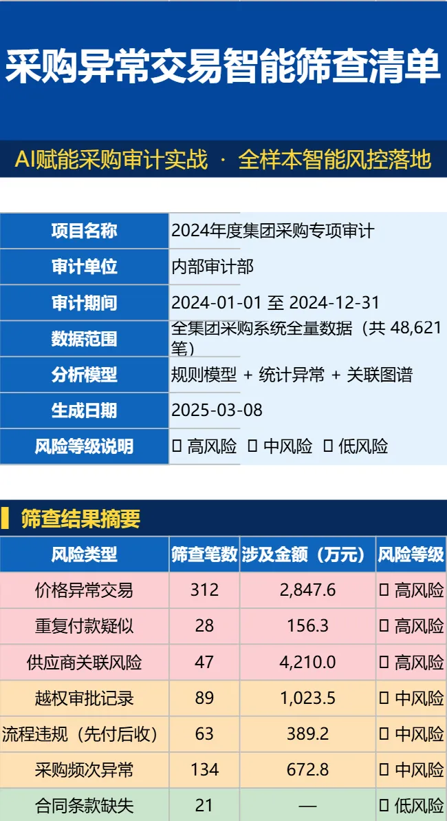 这也是为什么,昨天那篇文章会让那么多读者感到震撼。因为大家突然发现,原来采购审计不只是能查问题,它还可以做得更快、更深、更全、更像现代管理工具。