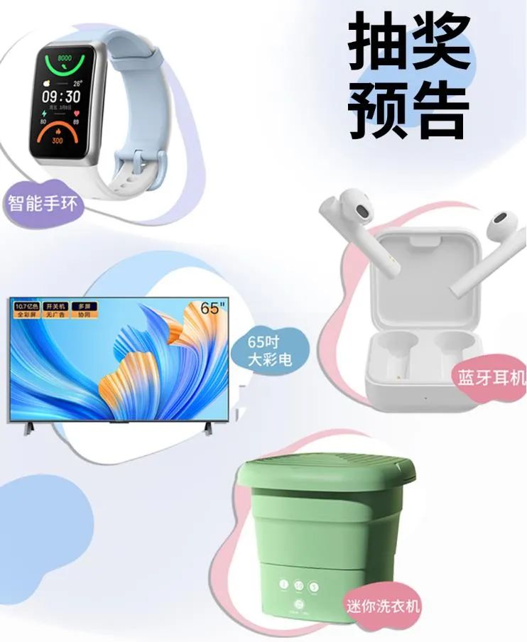 活动期间,吾悦会员全场当日单笔消费满52元即可参与抽奖华为P60小米ultra 13等精彩好礼活动。